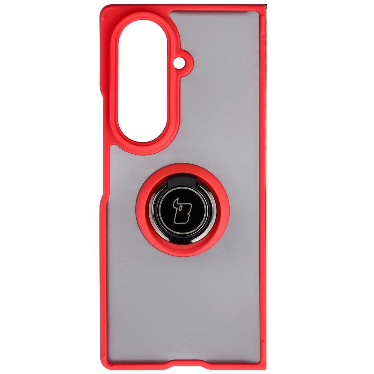 Etui z uchwytem na palec Bizon Case Hybrid Ring do Galaxy Z Fold7, przydymione z czerwoną ramką