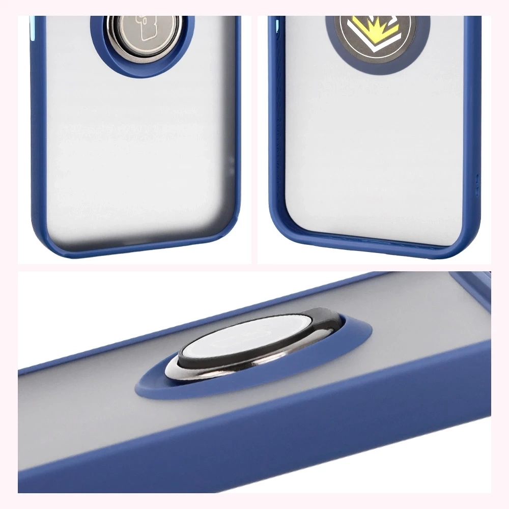Etui z uchwytem na palec Bizon Case Hybrid Ring do Google Pixel 10 Pro XL, przydymione z granatową ramką