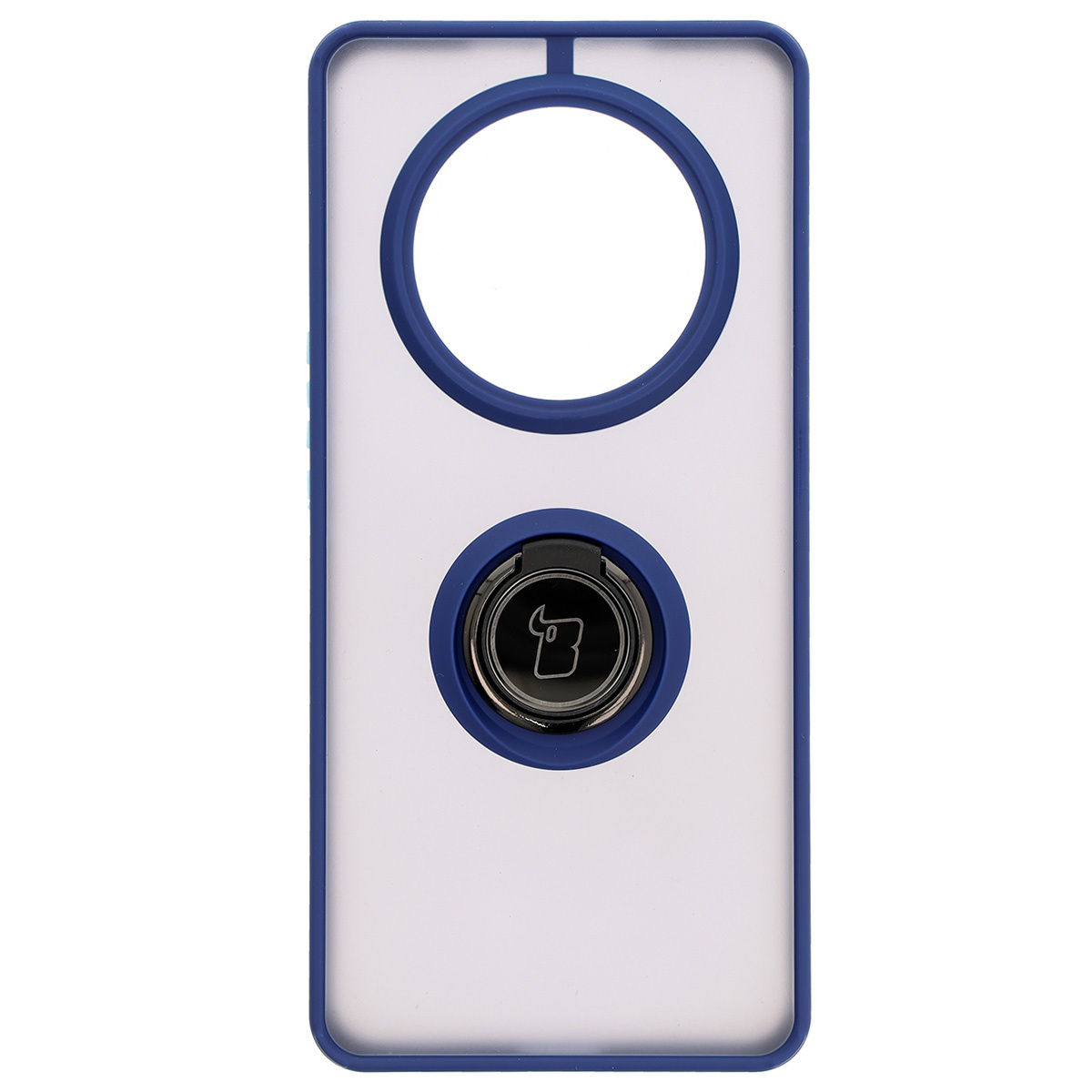 Etui z uchwytem na palec Bizon Case Hybrid Ring do Honor Magic7 Lite, przydymione z granatową ramką