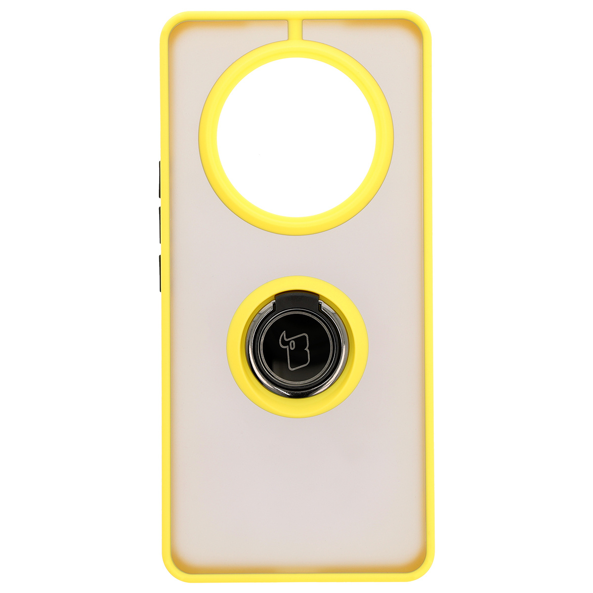 Etui z uchwytem na palec Bizon Case Hybrid Ring do Honor Magic7 Lite, przydymione z żółtą ramką