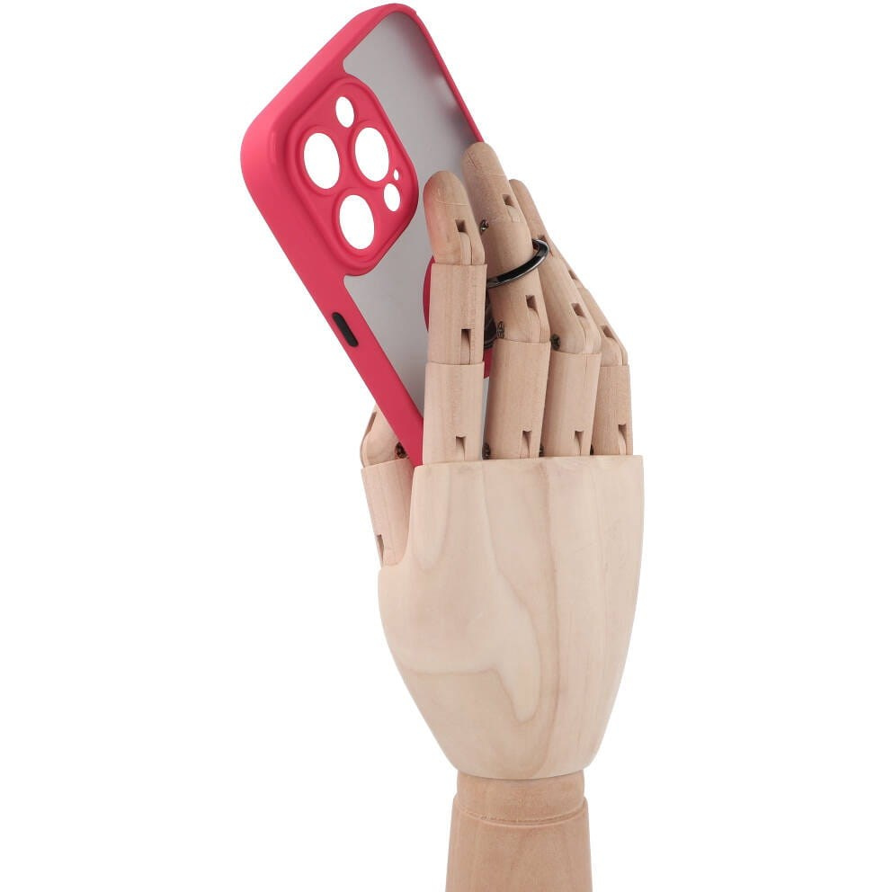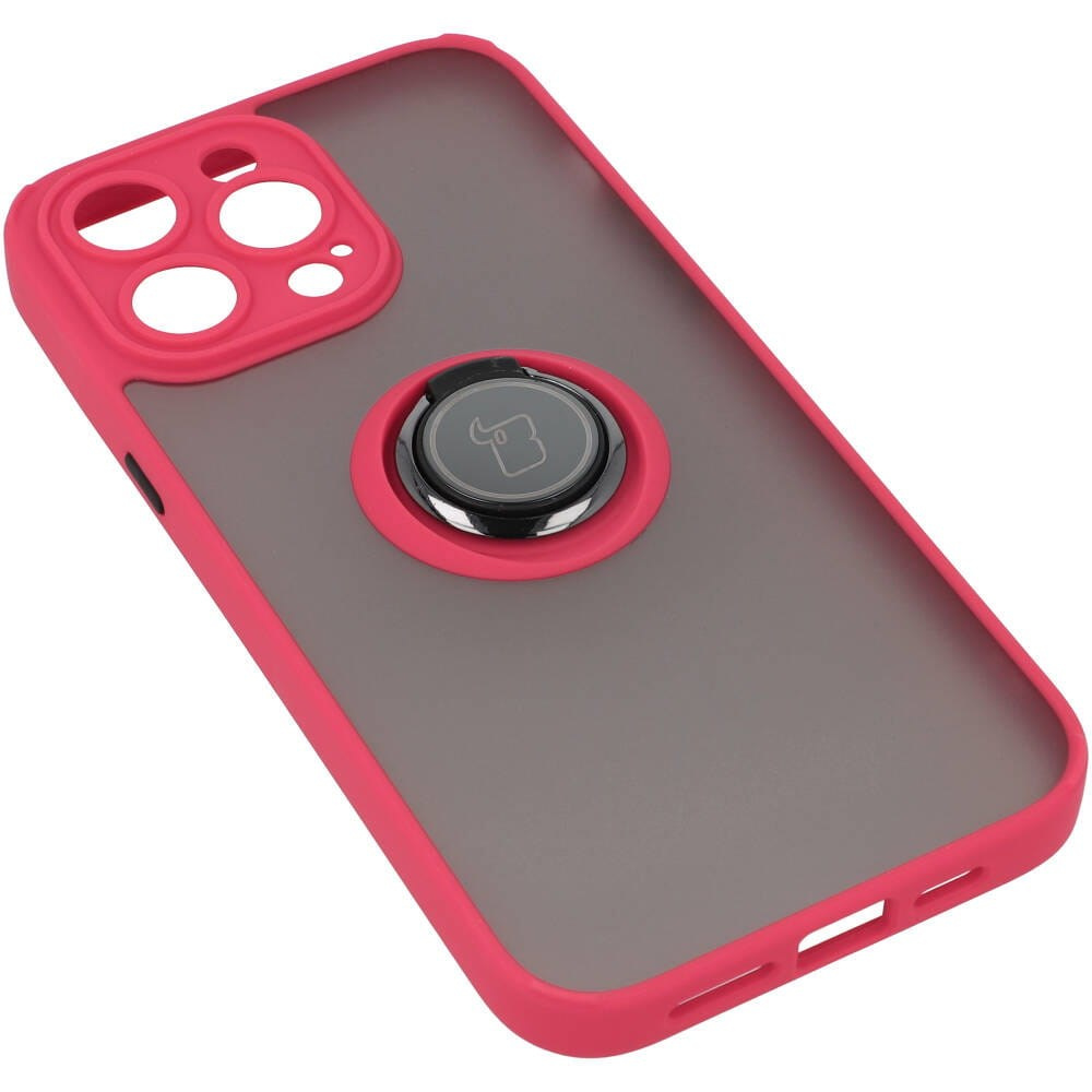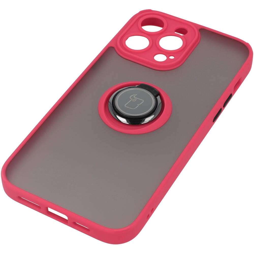 Etui z uchwytem na palec Bizon Case Hybrid Ring do iPhone 14 Pro Max, przydymione z czerwoną ramką