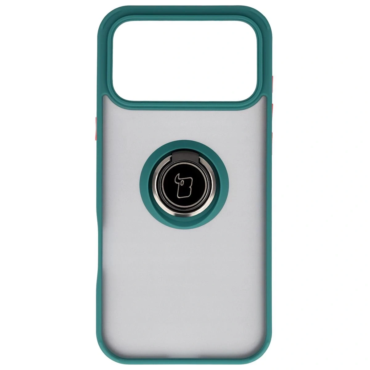 Etui z uchwytem na palec Bizon Case Hybrid Ring do iPhone 17 Pro Max, przydymione z ciemnozieloną ramką