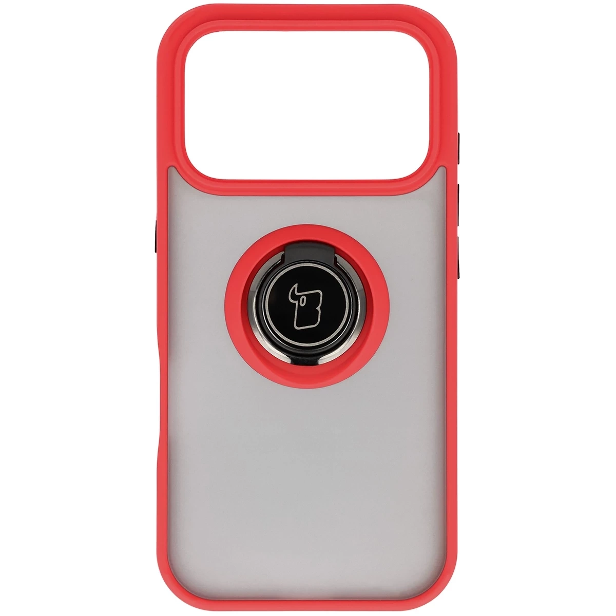 Etui z uchwytem na palec Bizon Case Hybrid Ring do iPhone 17 Pro, przydymione z czerwoną ramką