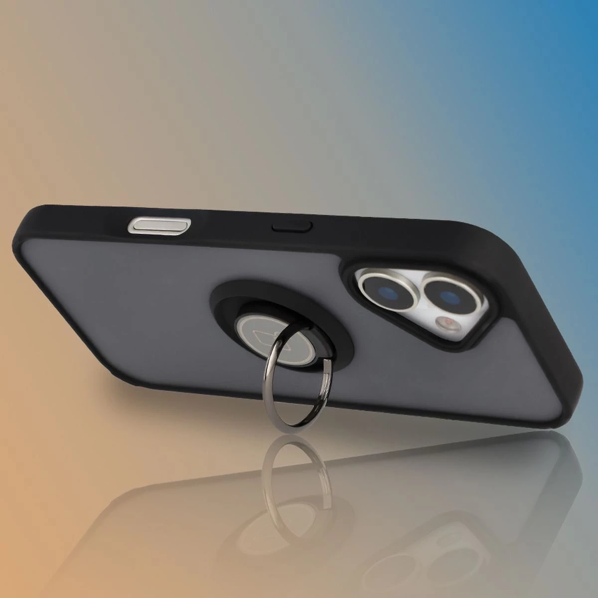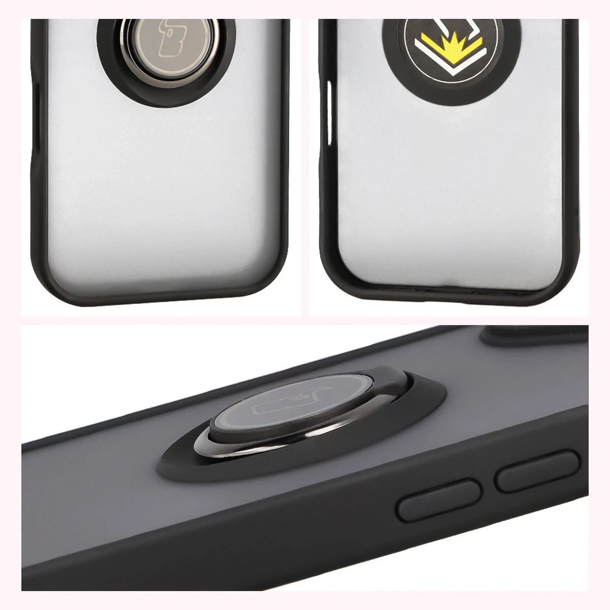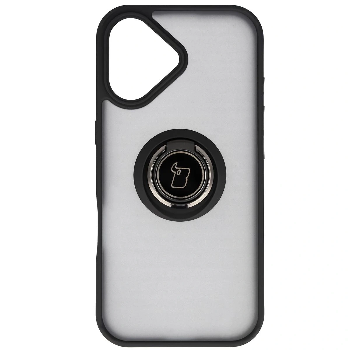 Etui z uchwytem na palec Bizon Case Hybrid Ring do iPhone 17, przydymione z czarną ramką
