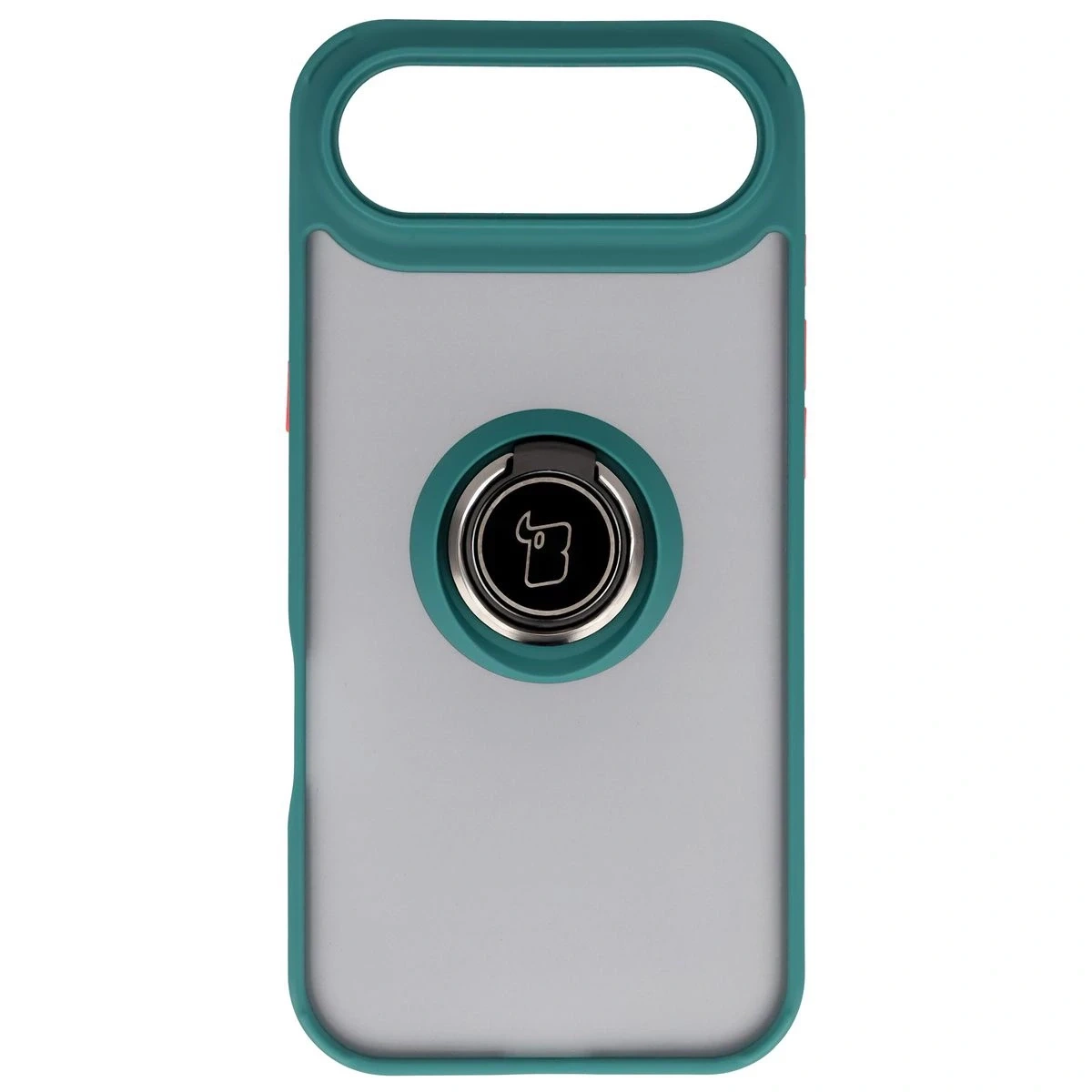 Etui z uchwytem na palec Bizon Case Hybrid Ring do iPhone Air, przydymione z ciemnozieloną ramką