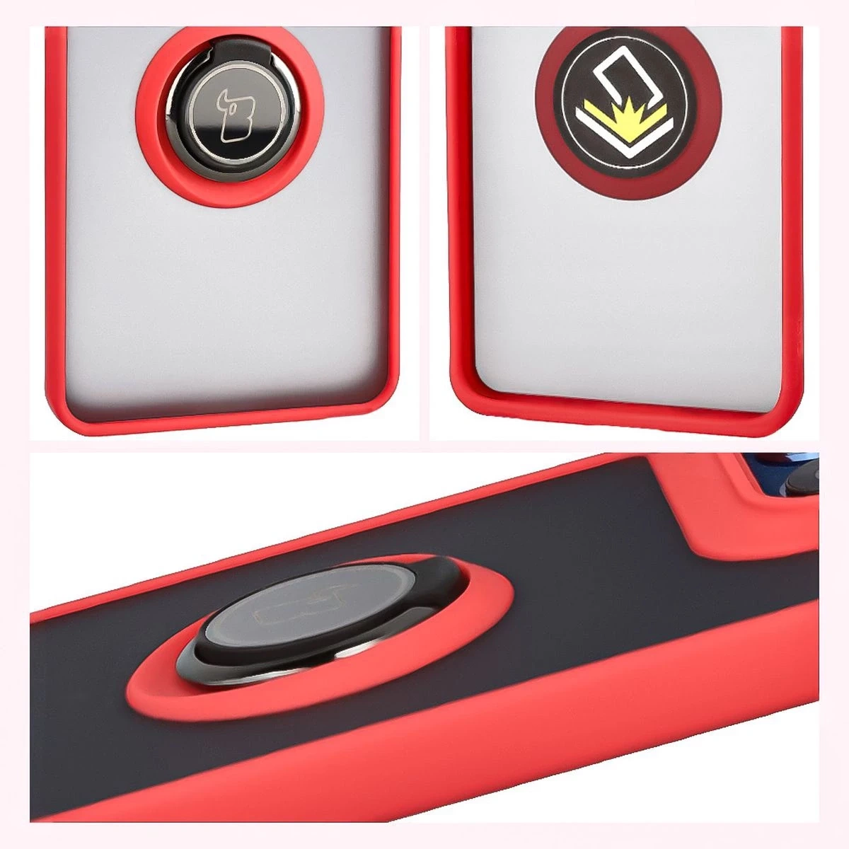 Etui z uchwytem na palec Bizon Case Hybrid Ring do Motorola Edge 60 Fusion / 60, przydymione z czerwoną ramką