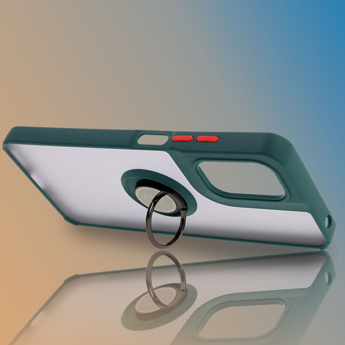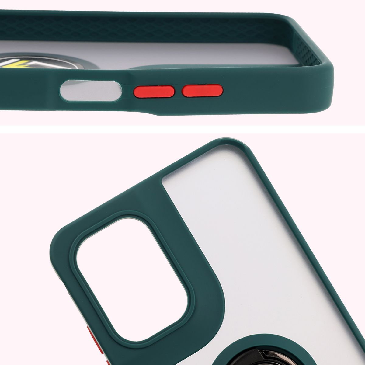 Etui z uchwytem na palec Bizon Case Hybrid Ring do Motorola Moto G05 / E15, przydymione z ciemnozieloną ramką