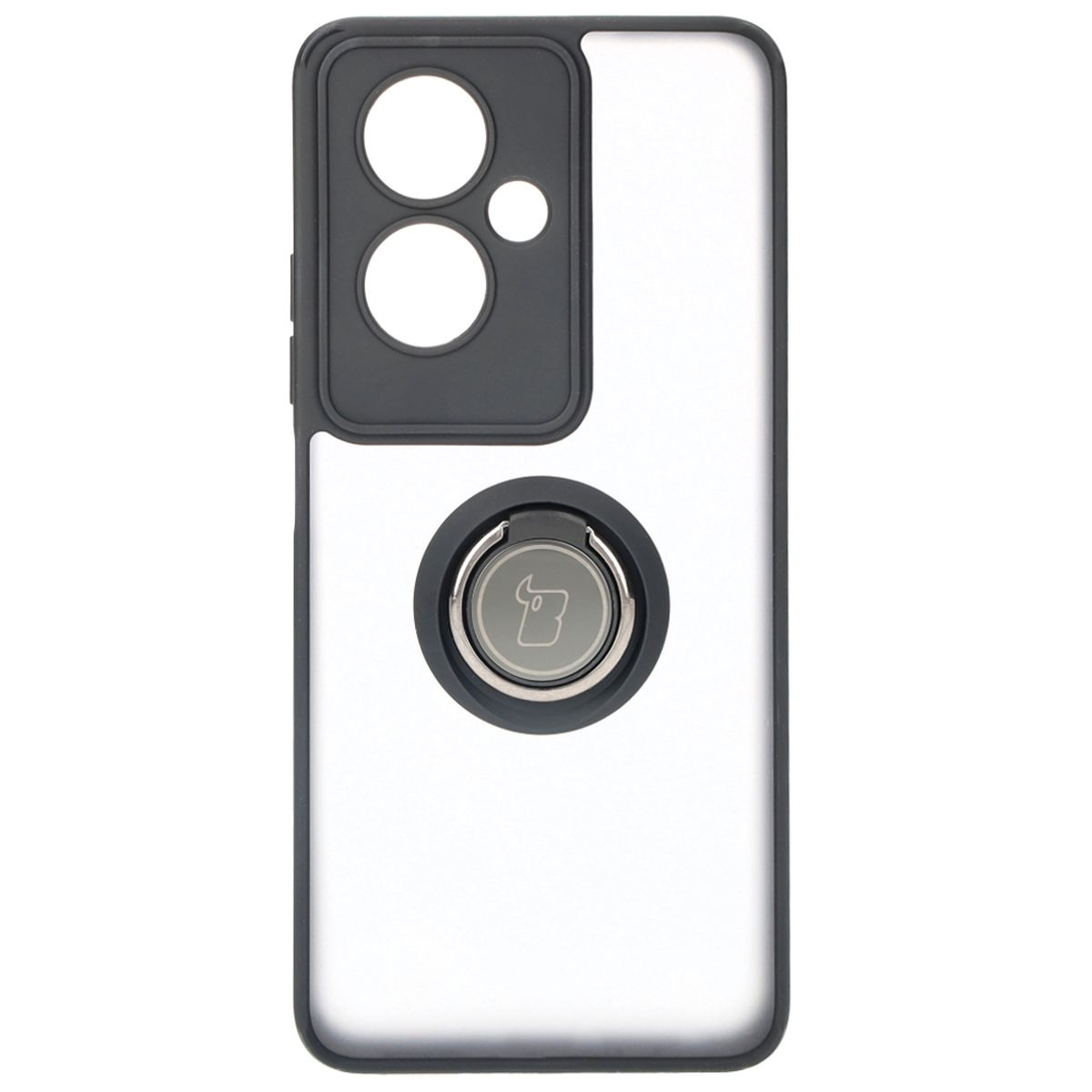 Etui z uchwytem na palec Bizon Case Hybrid Ring do Oppo A79 5G, przydymione z czarną ramką