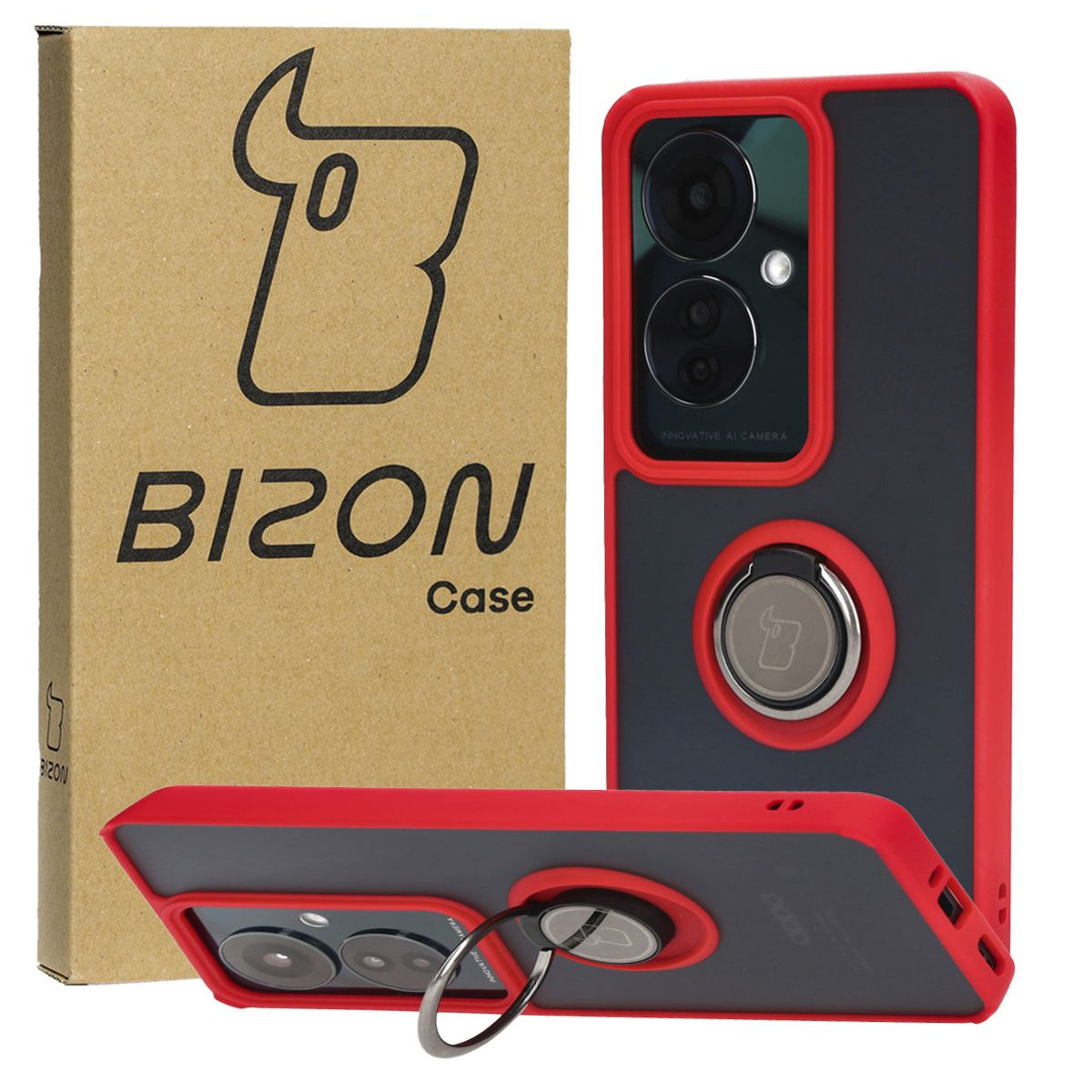 Etui z uchwytem na palec Bizon Case Hybrid Ring do Oppo Reno11 F 5G, przydymione z czerwoną ramką