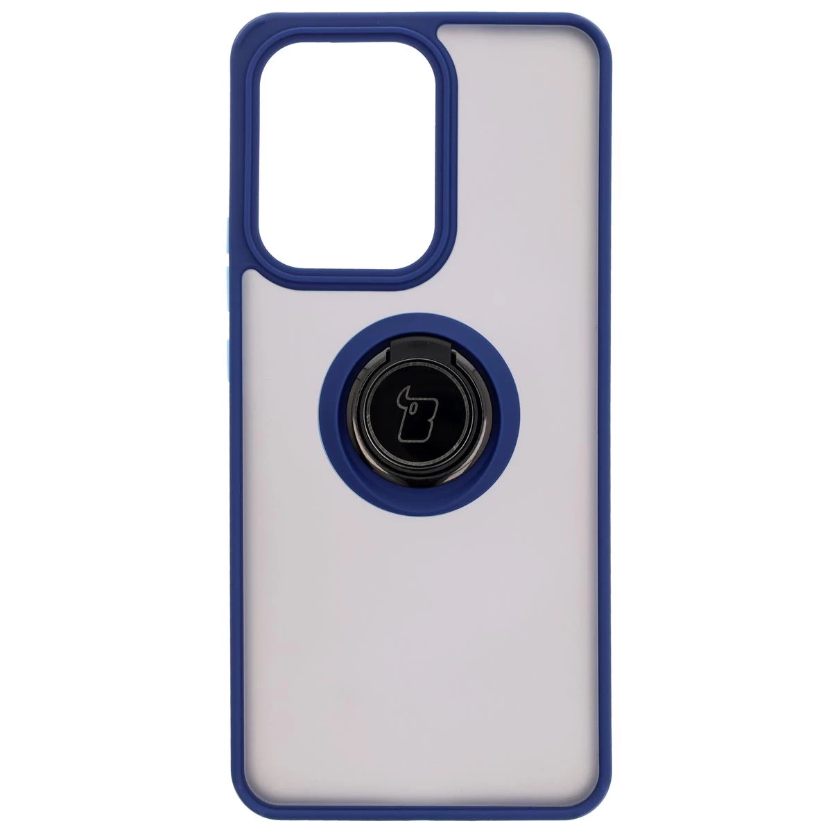 Etui z uchwytem na palec Bizon Case Hybrid Ring do Oppo Reno13 F / FS, przydymione z granatową ramką