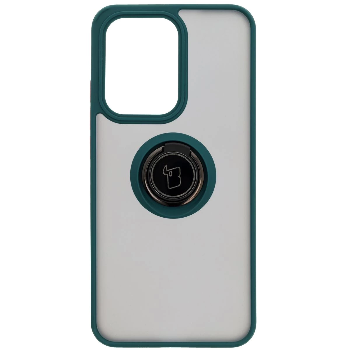 Etui z uchwytem na palec Bizon Case Hybrid Ring do Oppo Reno13 Pro, przydymione z ciemnozieloną ramką