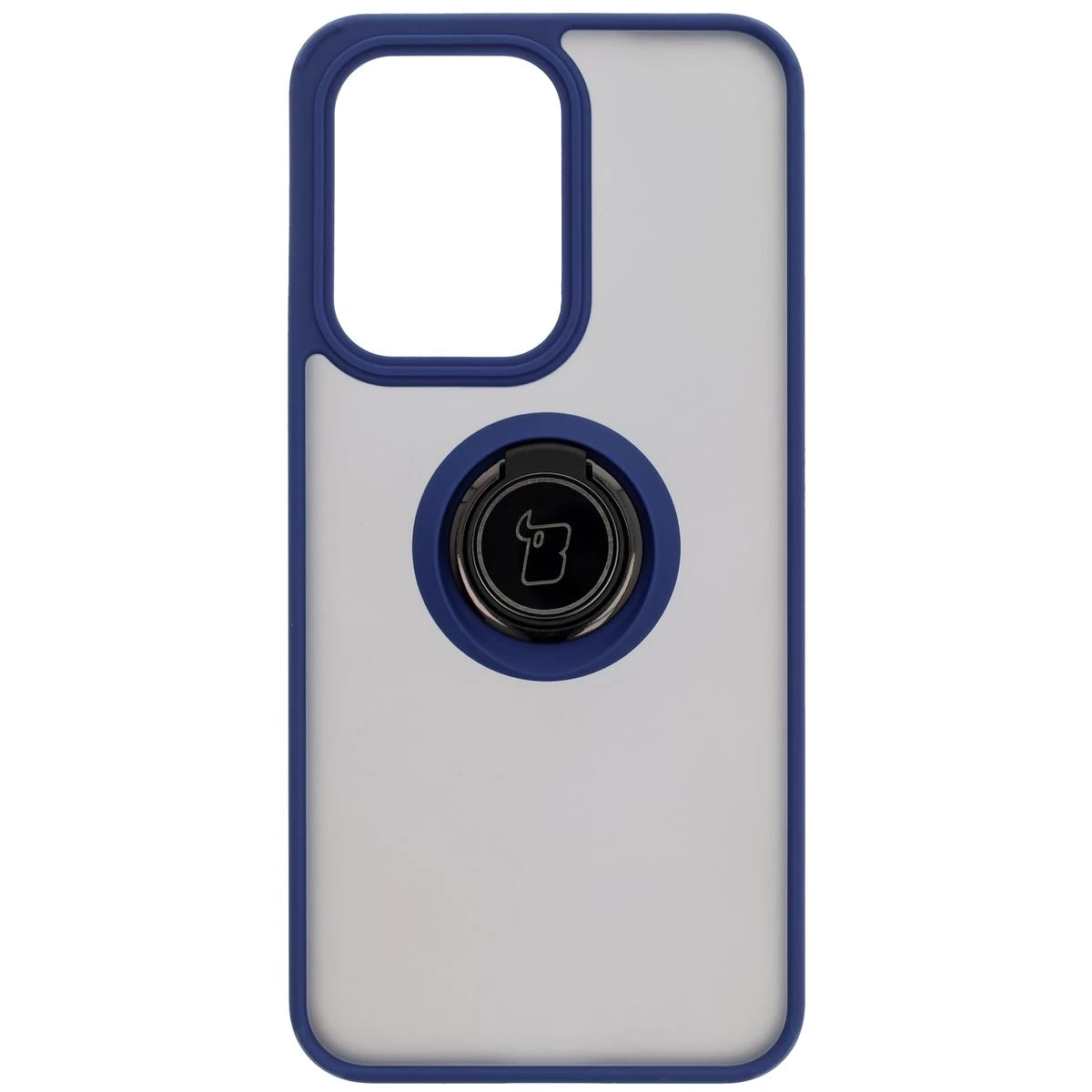 Etui z uchwytem na palec Bizon Case Hybrid Ring do Oppo Reno13 Pro, przydymione z granatową ramką