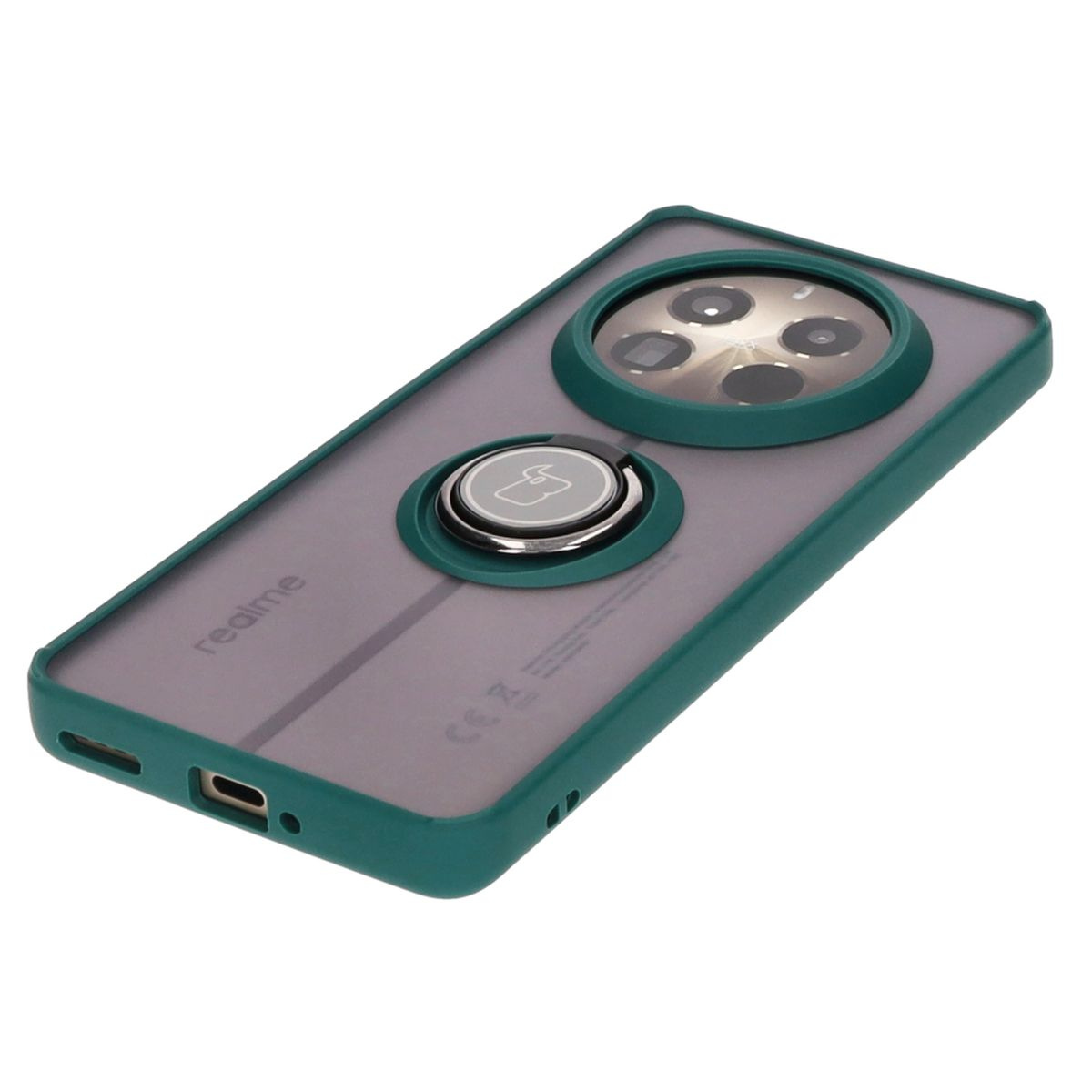 Etui z uchwytem na palec Bizon Case Hybrid Ring do Realme 12 Pro / 12 Pro+, przydymione z ciemnozieloną ramką