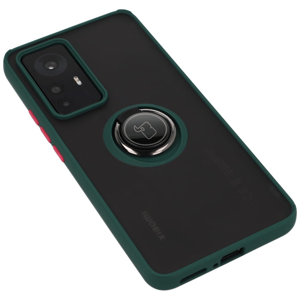 Etui z uchwytem na palec Bizon Case Hybrid Ring do Xiaomi 12T / 12T Pro, przydymione z ciemnozieloną ramką