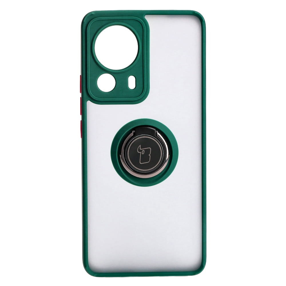 Etui z uchwytem na palec Bizon Case Hybrid Ring do Xiaomi 13 Lite, przydymione z ciemnozieloną ramką