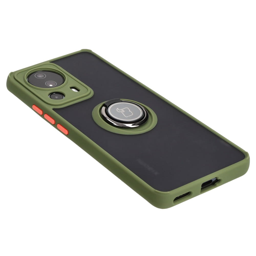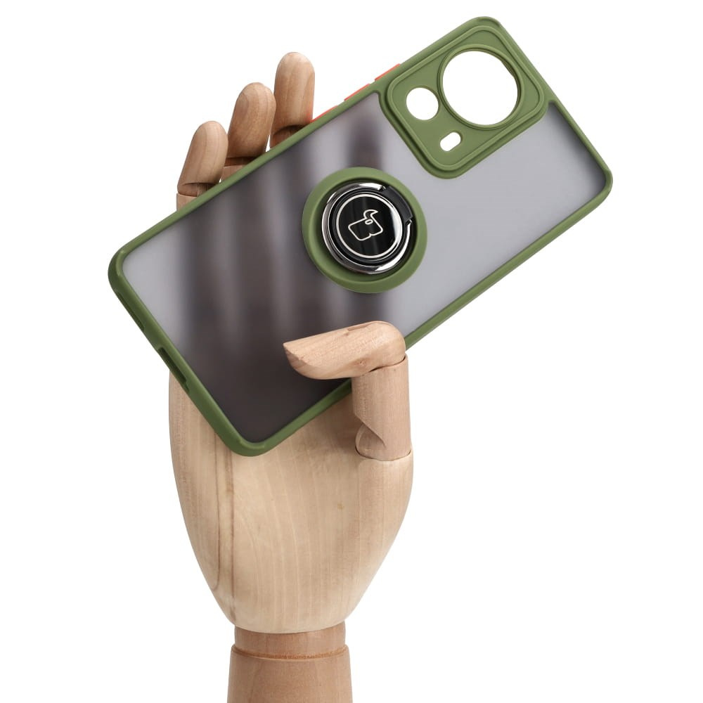 Etui z uchwytem na palec Bizon Case Hybrid Ring do Xiaomi 13 Lite, przydymione z zieloną ramką
