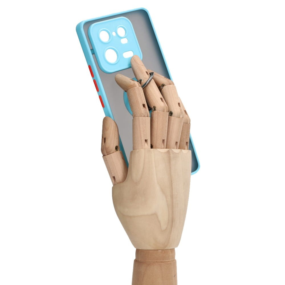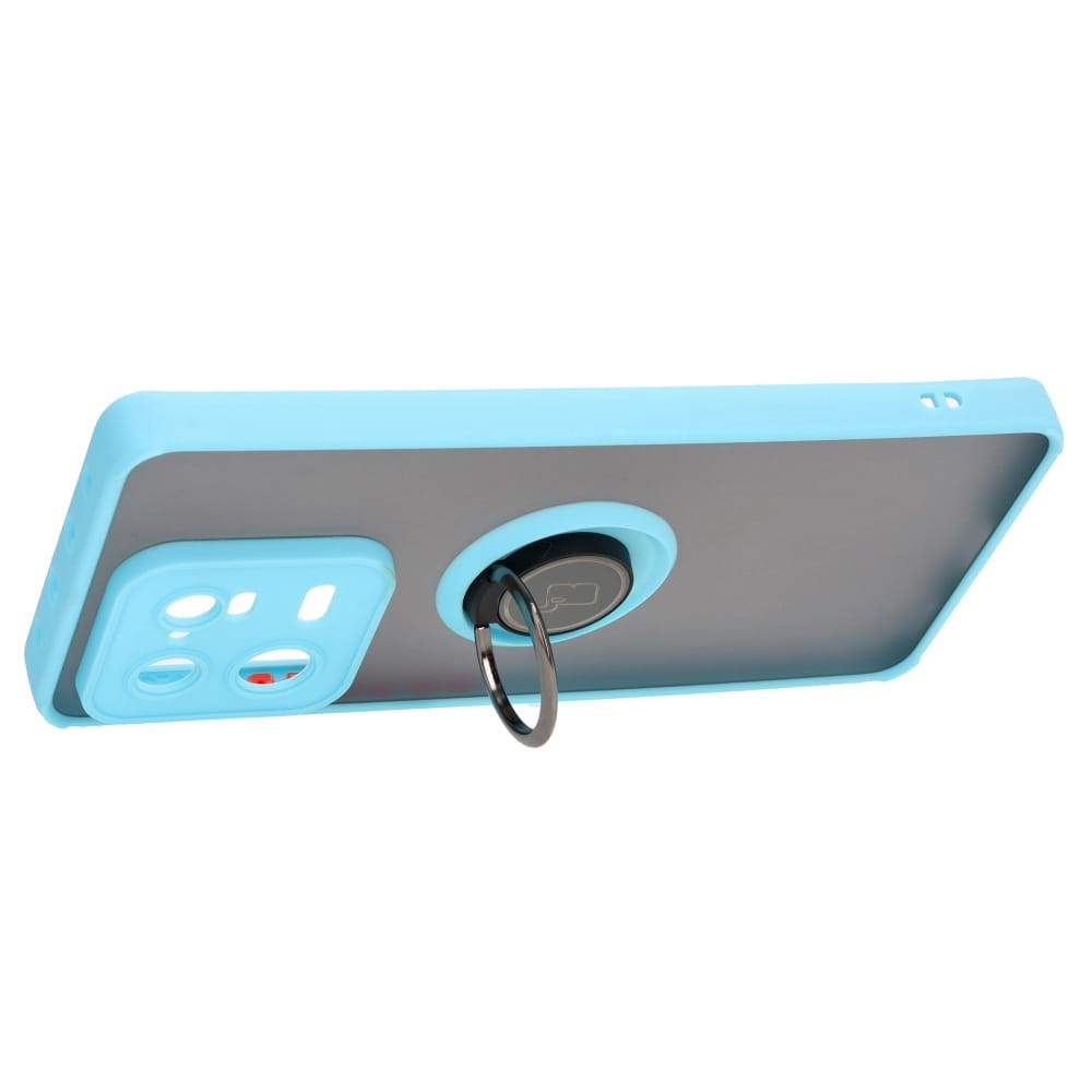 Etui z uchwytem na palec Bizon Case Hybrid Ring do Xiaomi 13 Pro, przydymione z jasnoniebieską ramką
