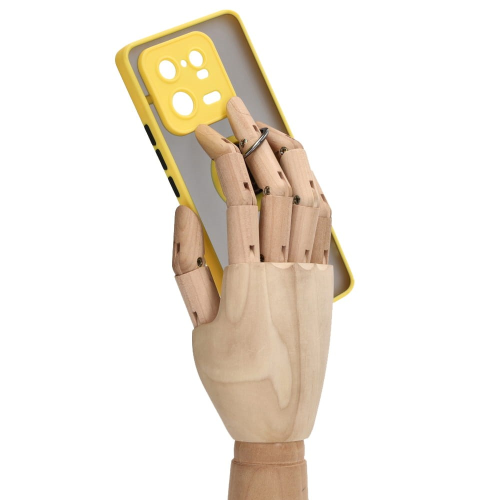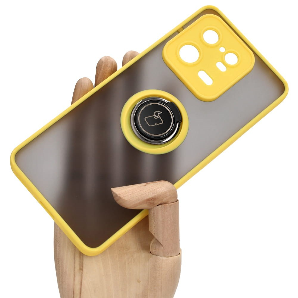 Etui z uchwytem na palec Bizon Case Hybrid Ring do Xiaomi 13 Pro, przydymione z żółtą ramką