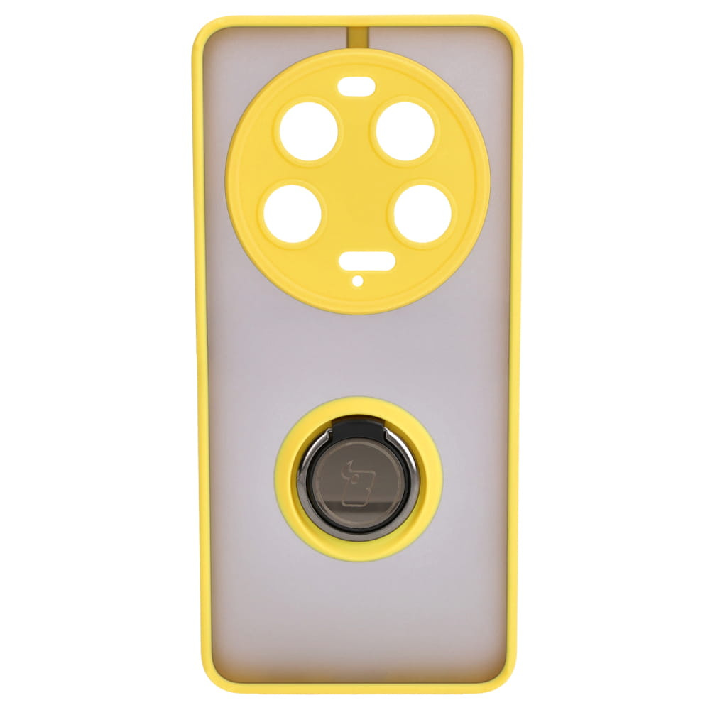 Etui z uchwytem na palec Bizon Case Hybrid Ring do Xiaomi 13 Ultra, przydymione z żółtą ramką