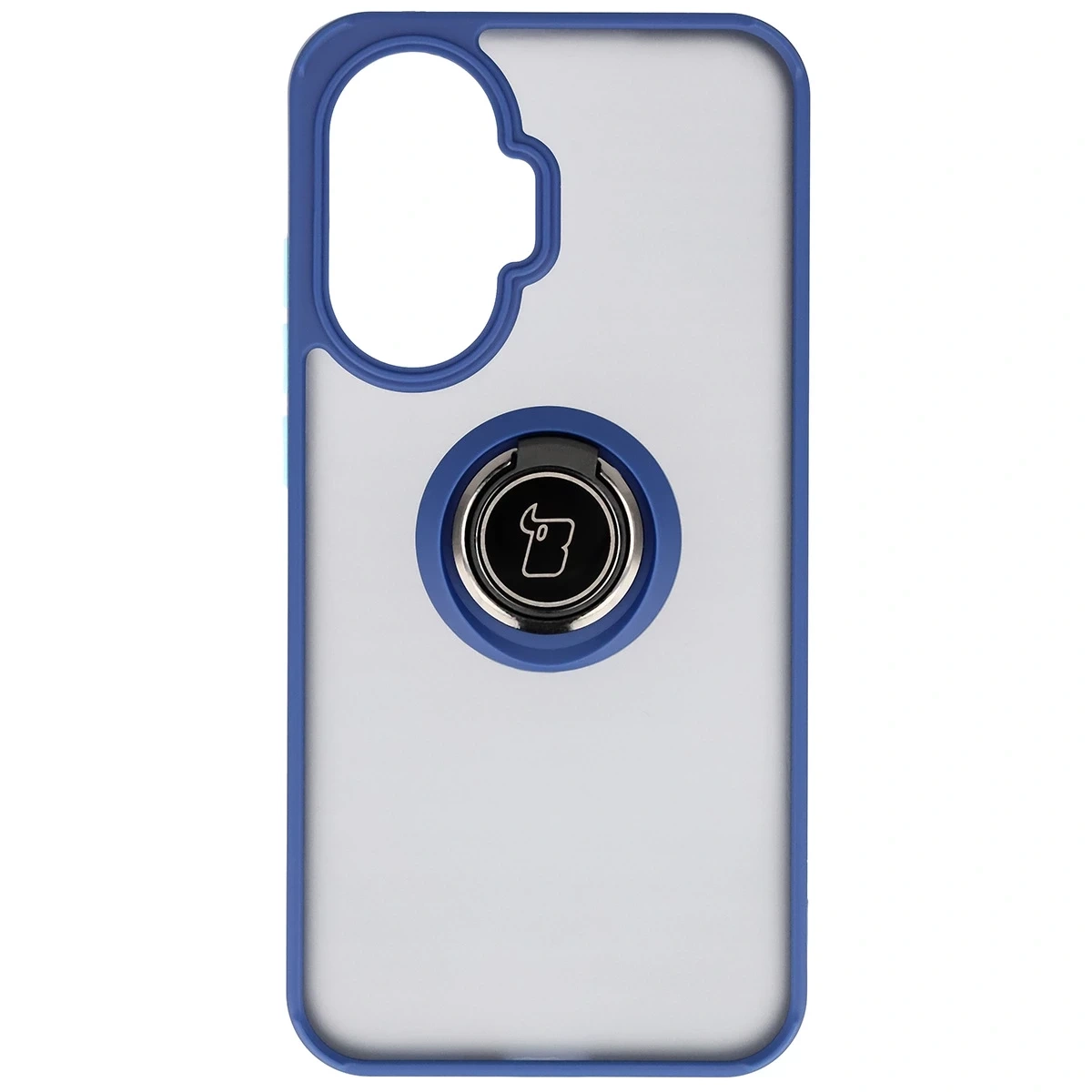 Etui z uchwytem na palec Bizon Case Hybrid Ring do Xiaomi POCO F7, przydymione z granatową ramką