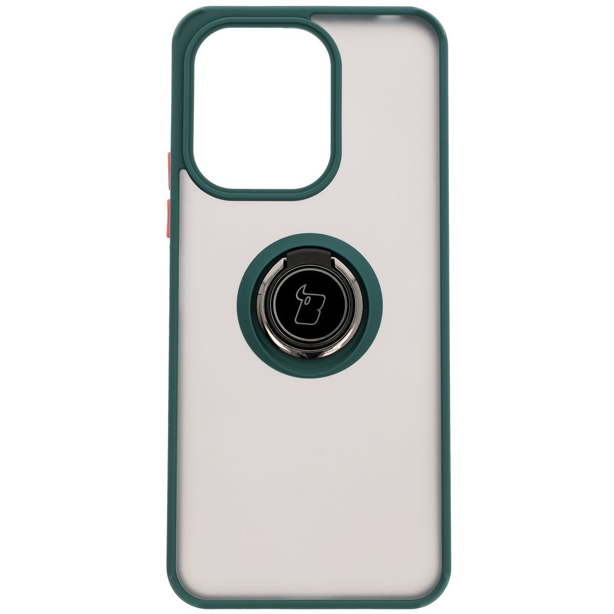 Etui z uchwytem na palec Bizon Case Hybrid Ring do Xiaomi Redmi 13 4G, przydymione z ciemnozieloną ramką