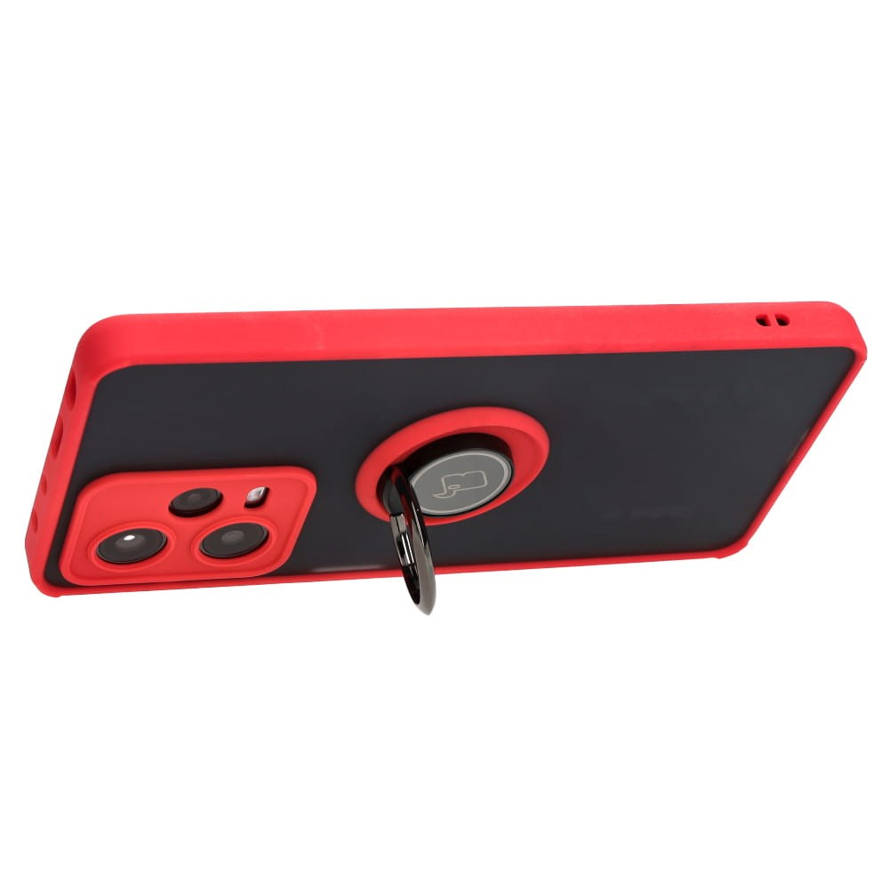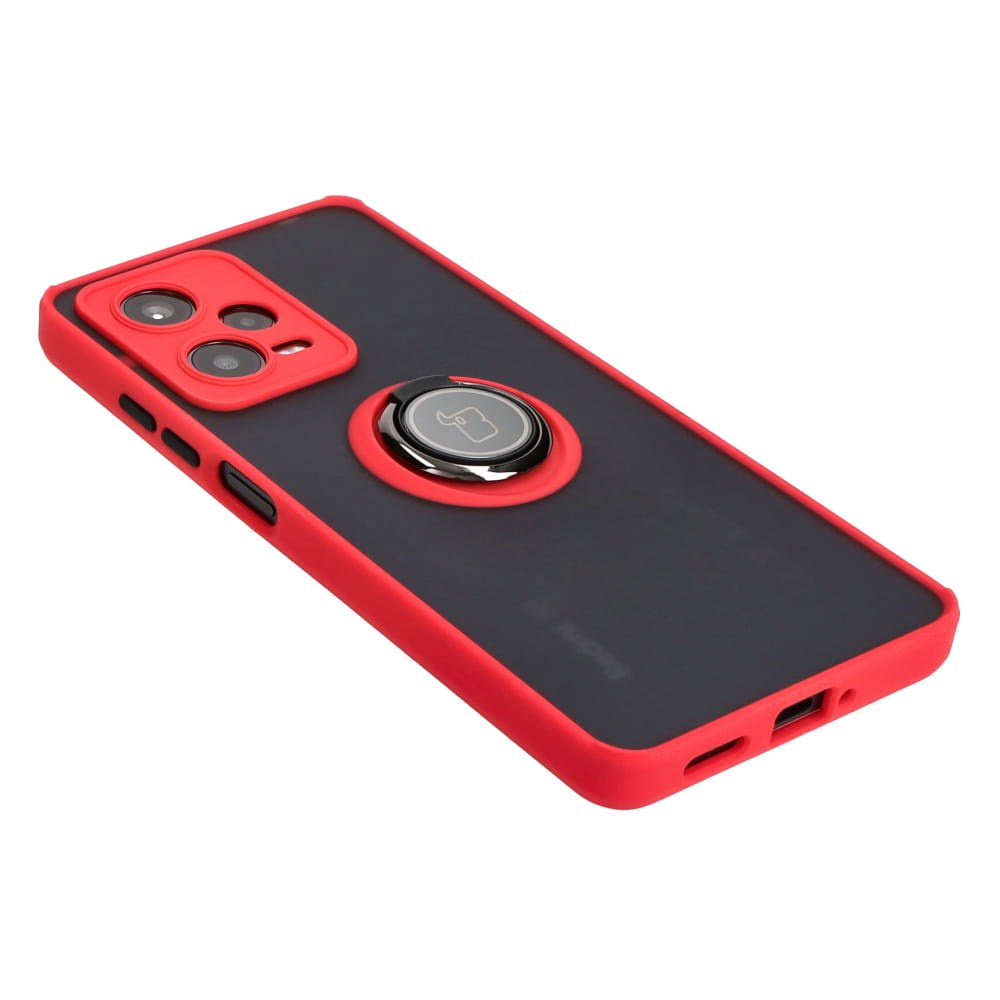 Etui z uchwytem na palec Bizon Case Hybrid Ring do Xiaomi Redmi Note 12 Pro 5G, przydymione z czerwoną ramką