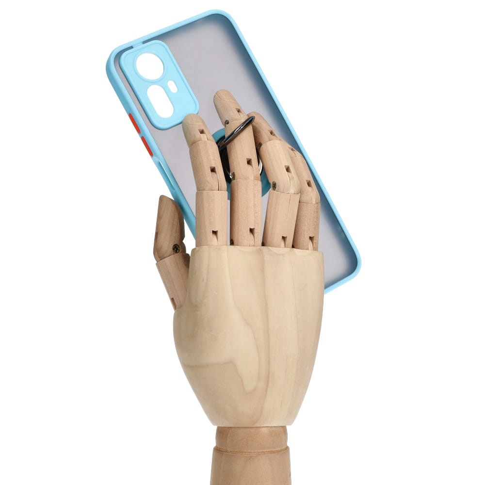 Etui z uchwytem na palec Bizon Case Hybrid Ring do Xiaomi Redmi Note 12S, przydymione z jasnoniebieską ramką