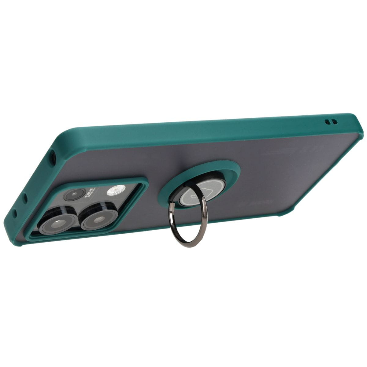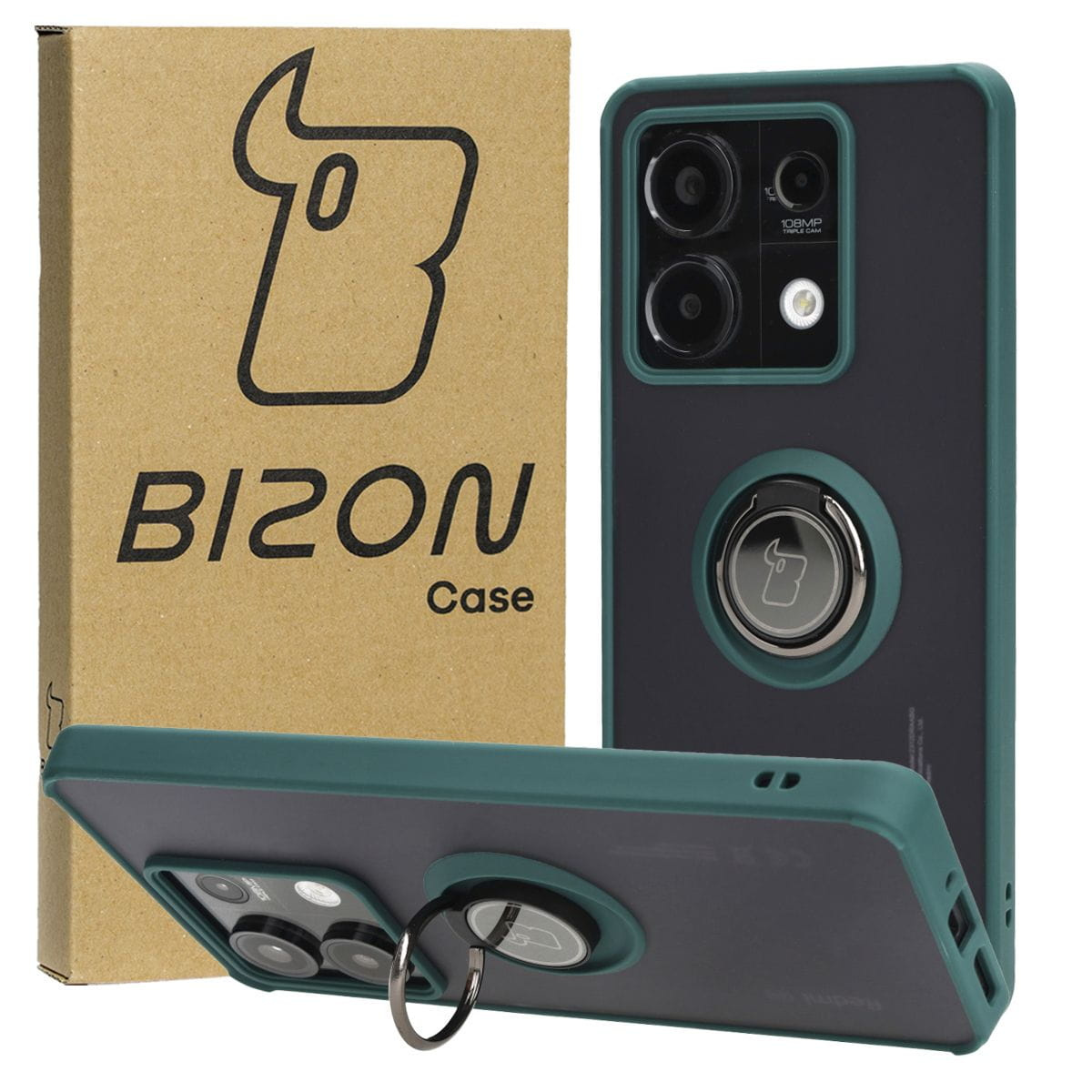 Etui z uchwytem na palec Bizon Case Hybrid Ring do Xiaomi Redmi Note 13 5G, przydymione z ciemnozieloną ramką