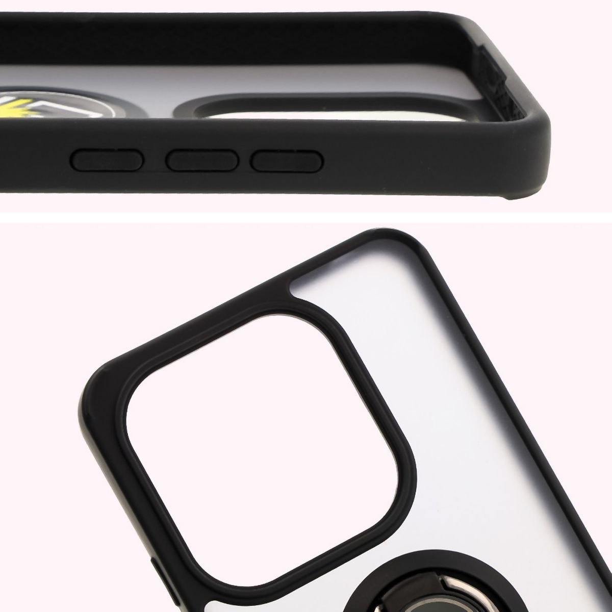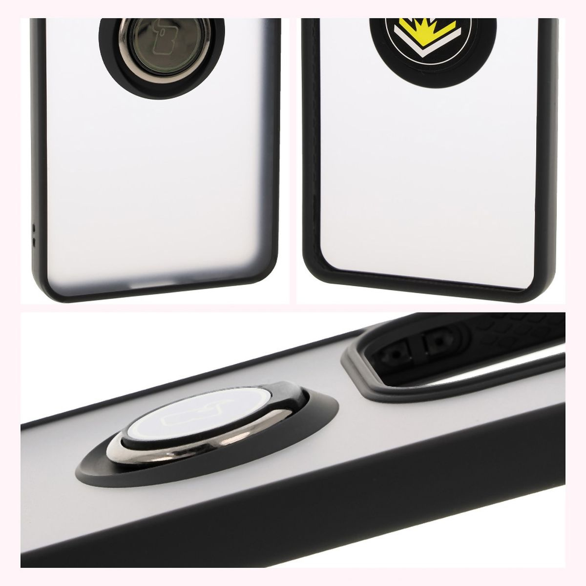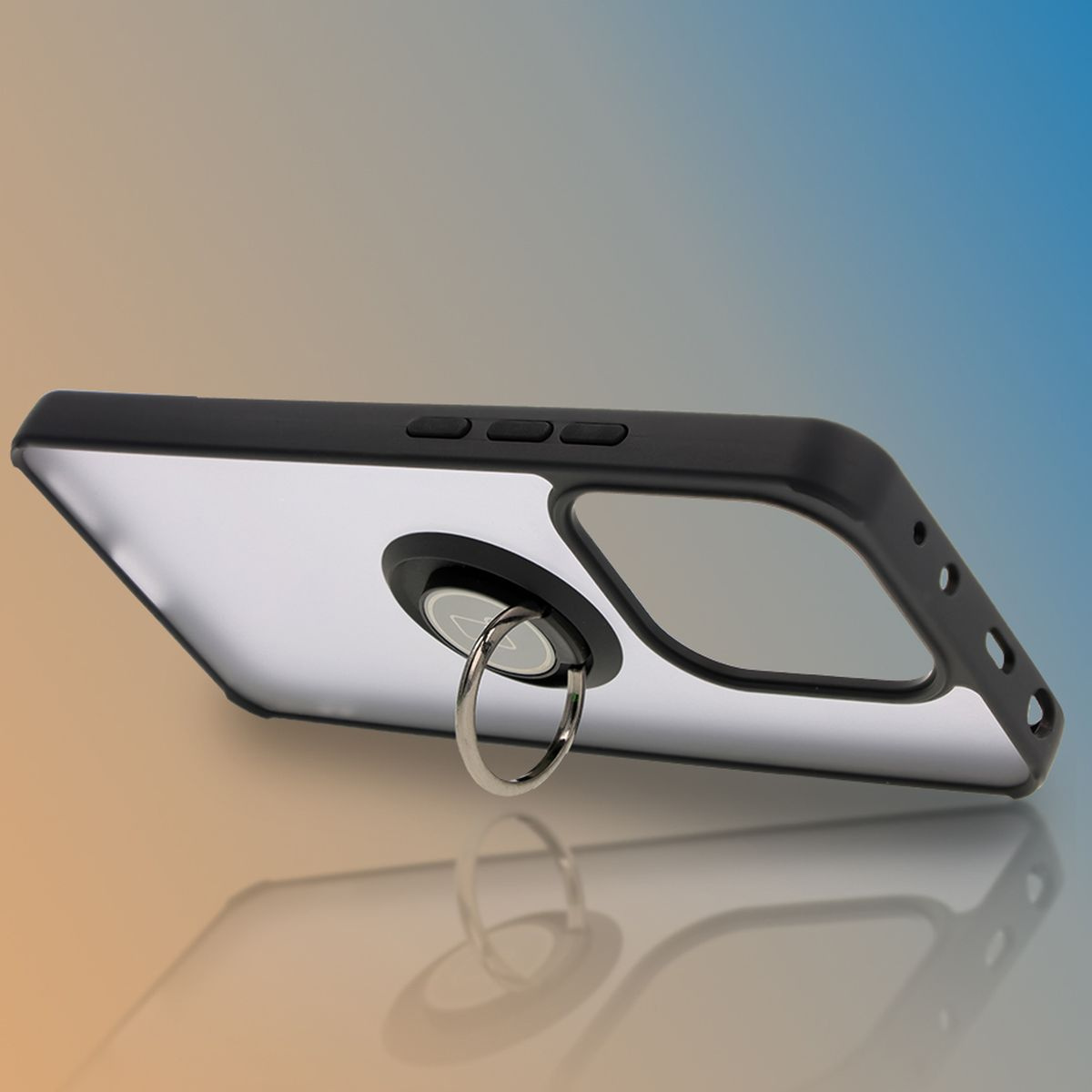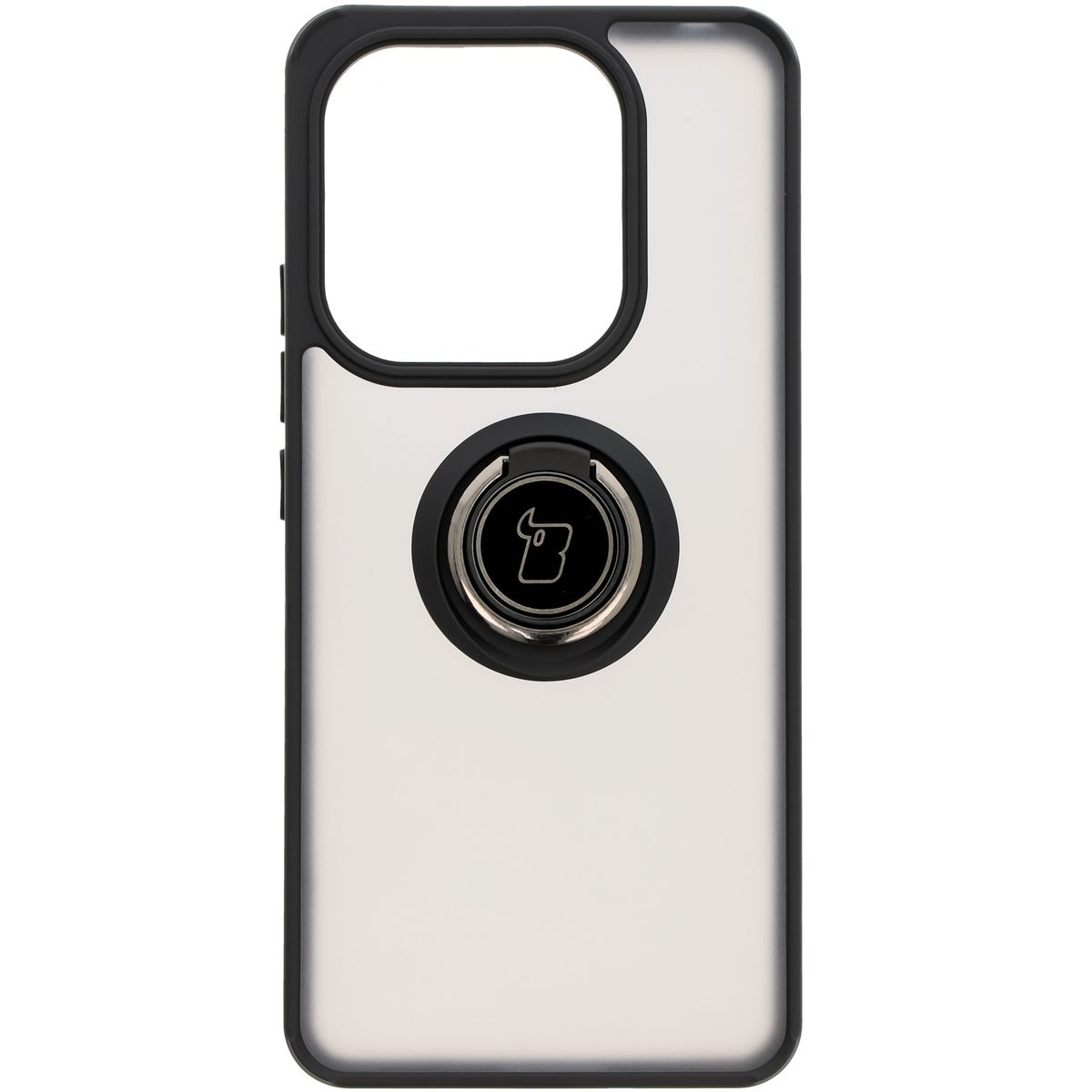 Etui z uchwytem na palec Bizon Case Hybrid Ring do Xiaomi Redmi Note 14 4G, przydymione z czarną ramką