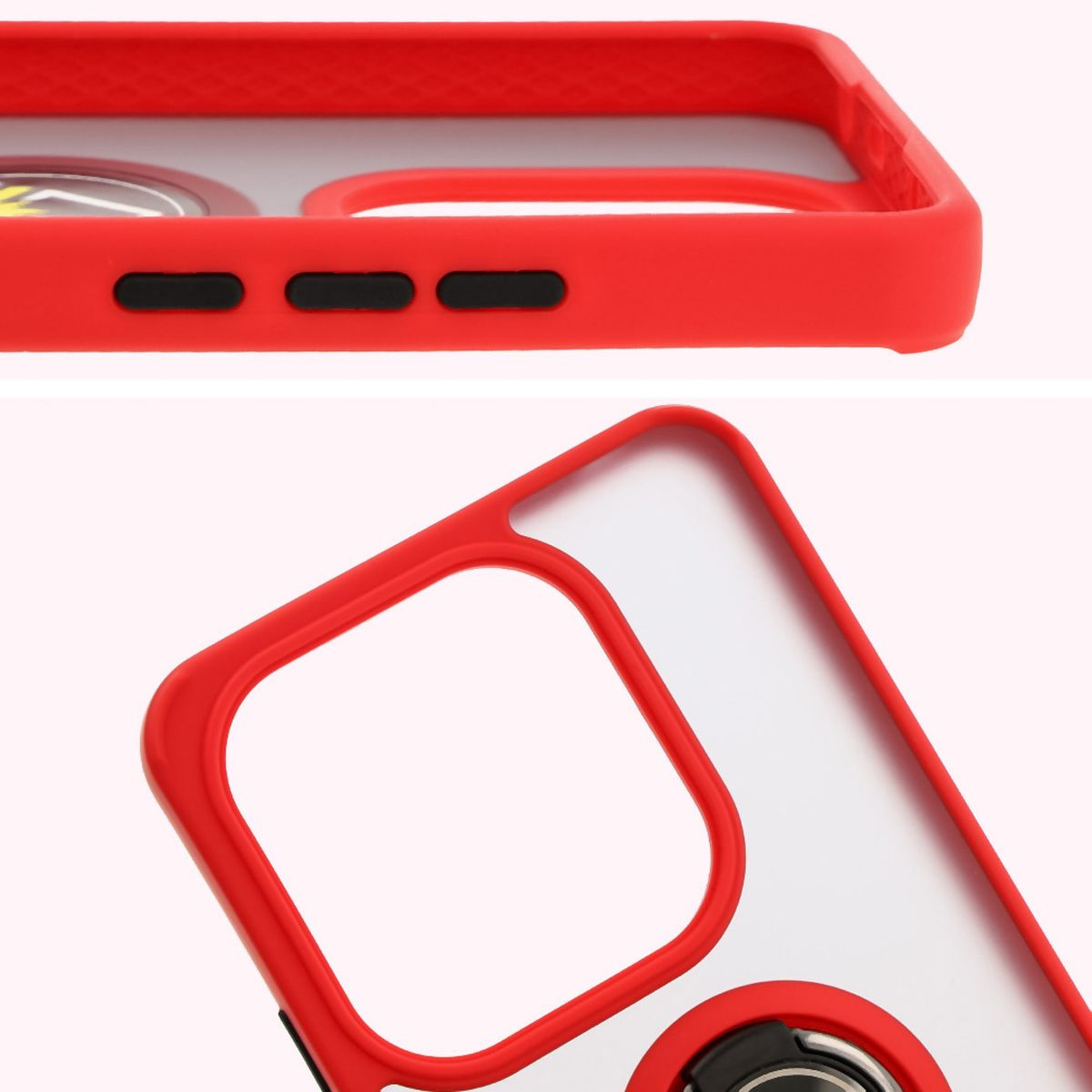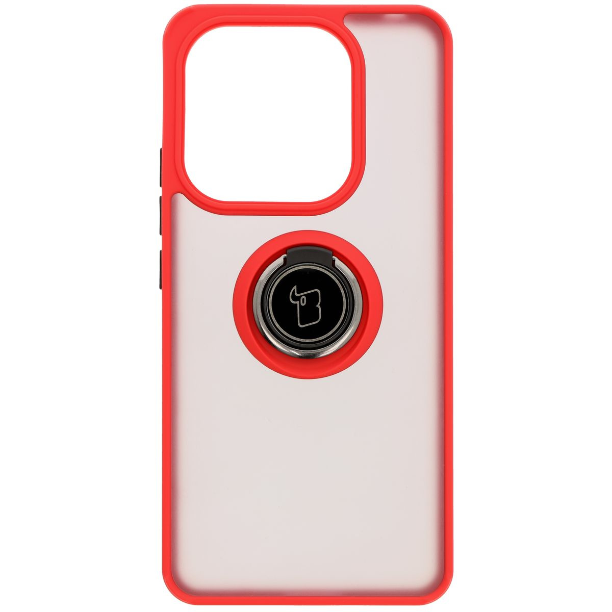 Etui z uchwytem na palec Bizon Case Hybrid Ring do Xiaomi Redmi Note 14 4G, przydymione z czerwoną ramką