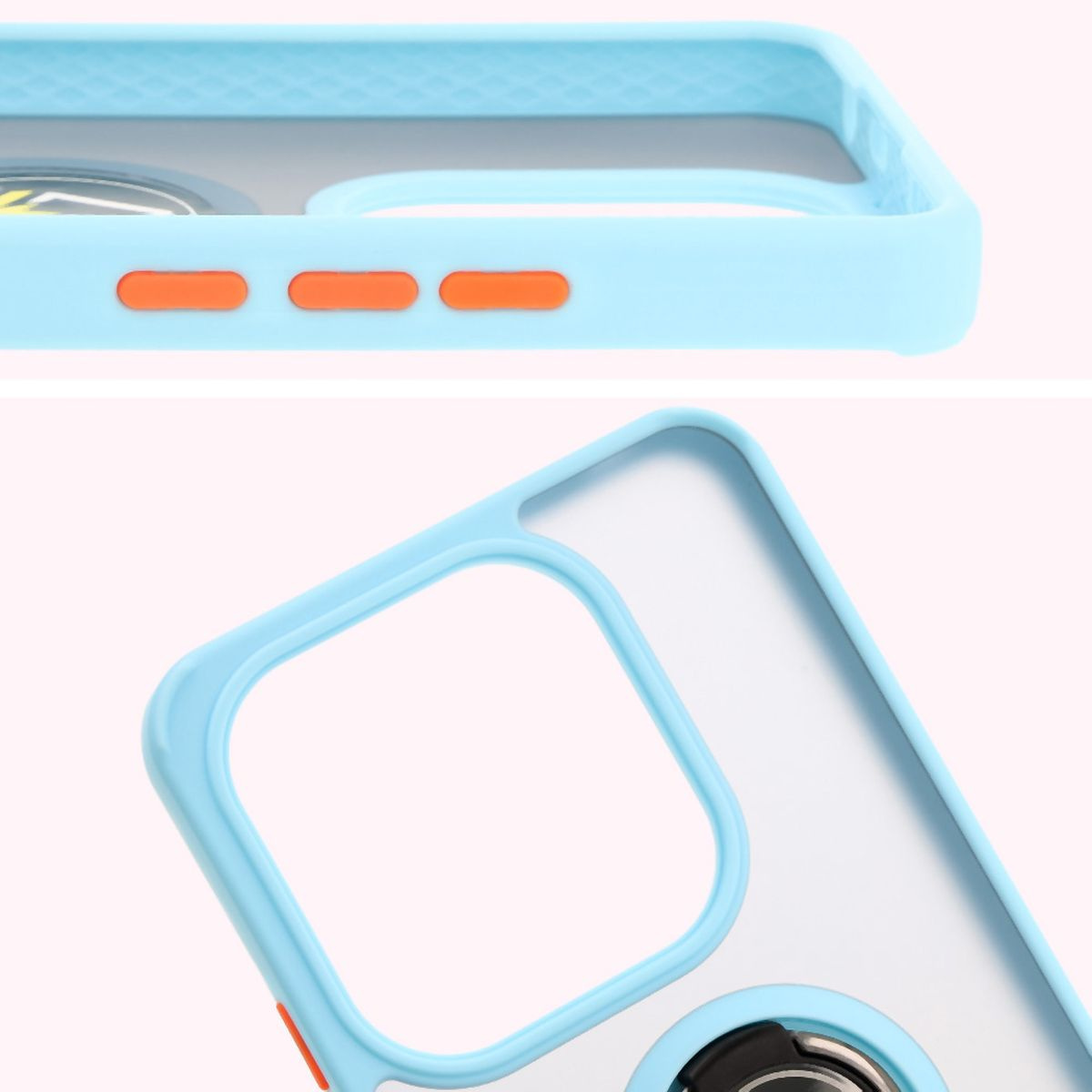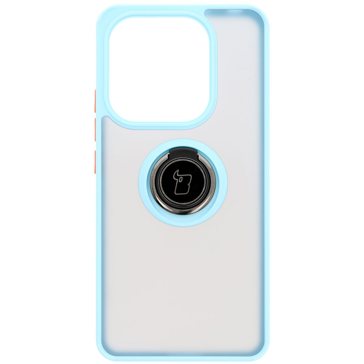 Etui z uchwytem na palec Bizon Case Hybrid Ring do Xiaomi Redmi Note 14 4G, przydymione z jasnoniebieską ramką