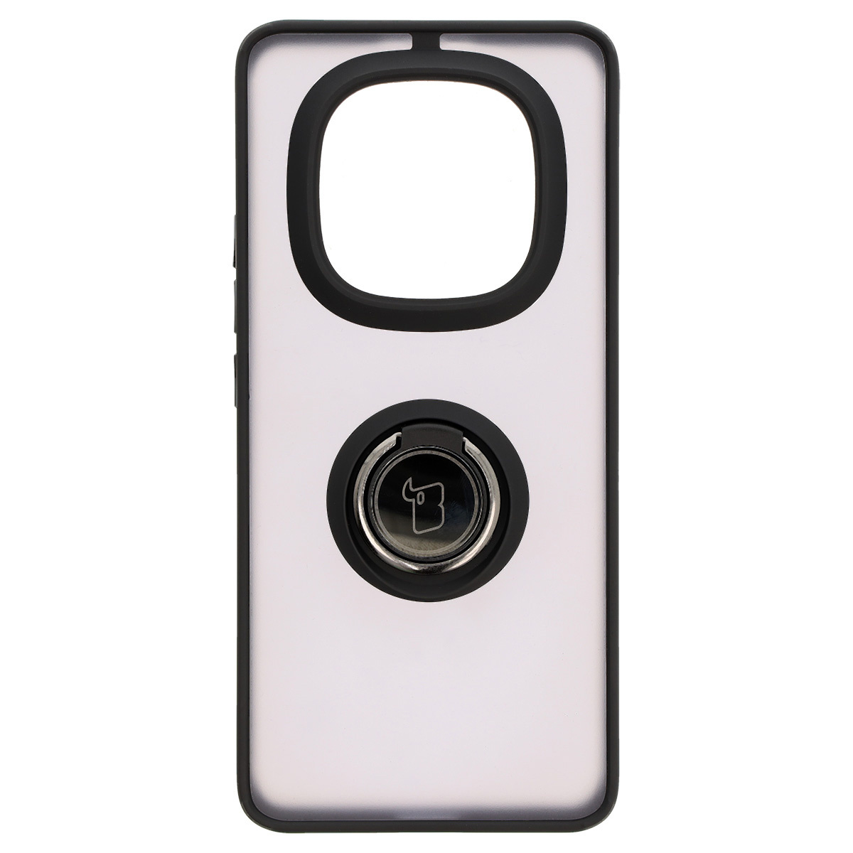 Etui z uchwytem na palec Bizon Case Hybrid Ring do Xiaomi Redmi Note 14 Pro Plus 5G, przydymione z czarną ramką