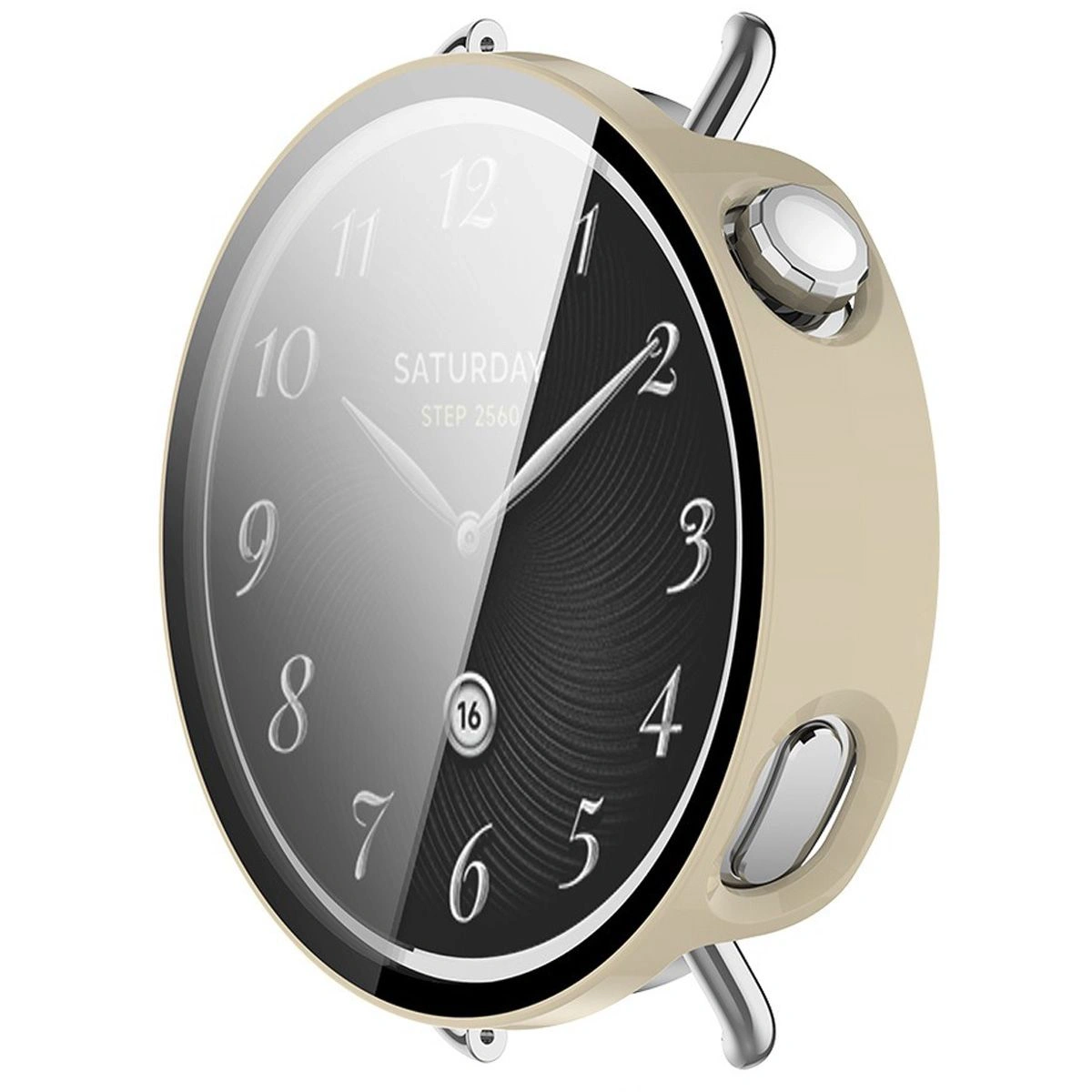 Etui ze szkłem do zegarka Bizon Case+Glass Watch do Xiaomi Watch S4 41 mm, beżowe