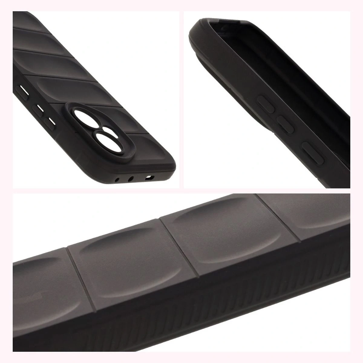 Wyżłobienia na pleckach nie tylko estetycznie wyglądają, ale również pełnią rolę niewidzialnych poduszek powietrznych! Ten sam rodzaj zabezpieczenia zastosowano także w rogach obudowy, aby Twój telefon był jeszcze bezpieczniejszy.