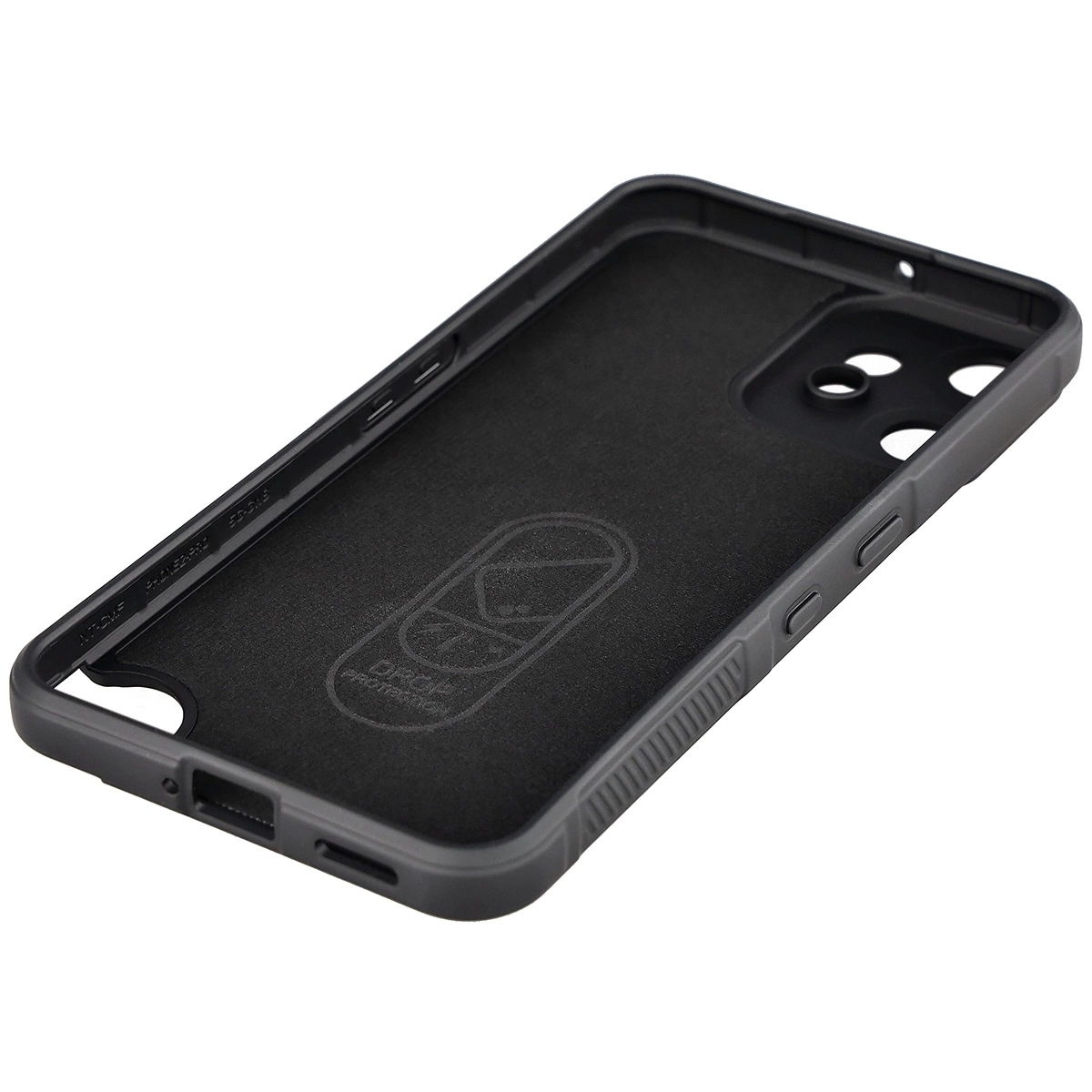 Wzmocnione narożniki oraz delikatnie podniesione krawędzie zapewniają dodatkową ochronę, z kolei teksturowane boki pozwalają pewniej trzymać telefon, zapobiegając przypadkowemu wysunięciu się urządzenia z dłoni.