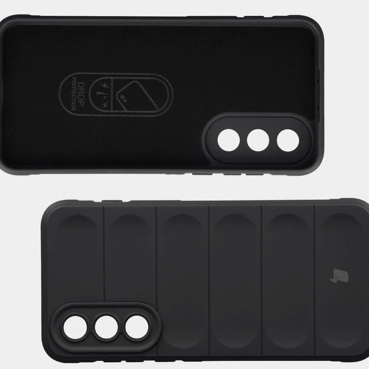 Wzmocnione narożniki oraz delikatnie podniesione krawędzie zapewniają dodatkową ochronę, z kolei teksturowane boki pozwalają pewniej trzymać telefon, zapobiegając przypadkowemu wysunięciu się urządzenia z dłoni.