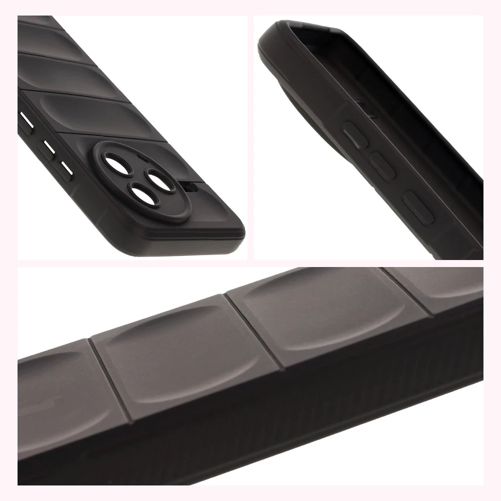Wzmocnione narożniki oraz delikatnie podniesione krawędzie zapewniają dodatkową ochronę, z kolei teksturowane boki pozwalają pewniej trzymać telefon, zapobiegając przypadkowemu wysunięciu się urządzenia z dłoni.