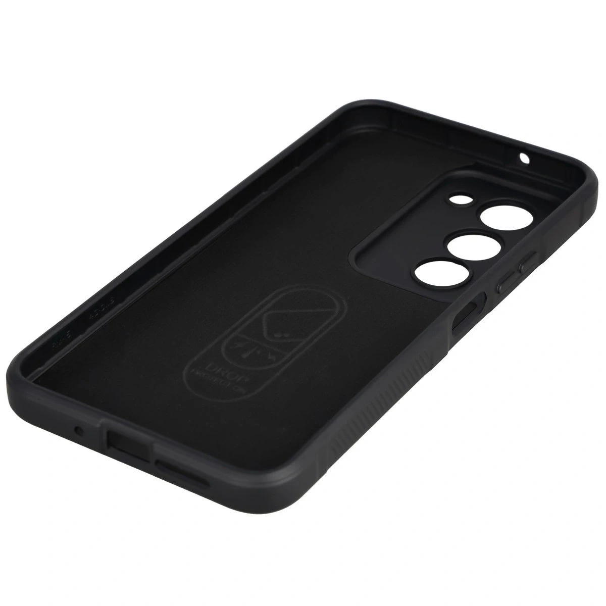 Wzmocnione narożniki oraz delikatnie podniesione krawędzie zapewniają dodatkową ochronę, z kolei teksturowane boki pozwalają pewniej trzymać telefon, zapobiegając przypadkowemu wysunięciu się urządzenia z dłoni.