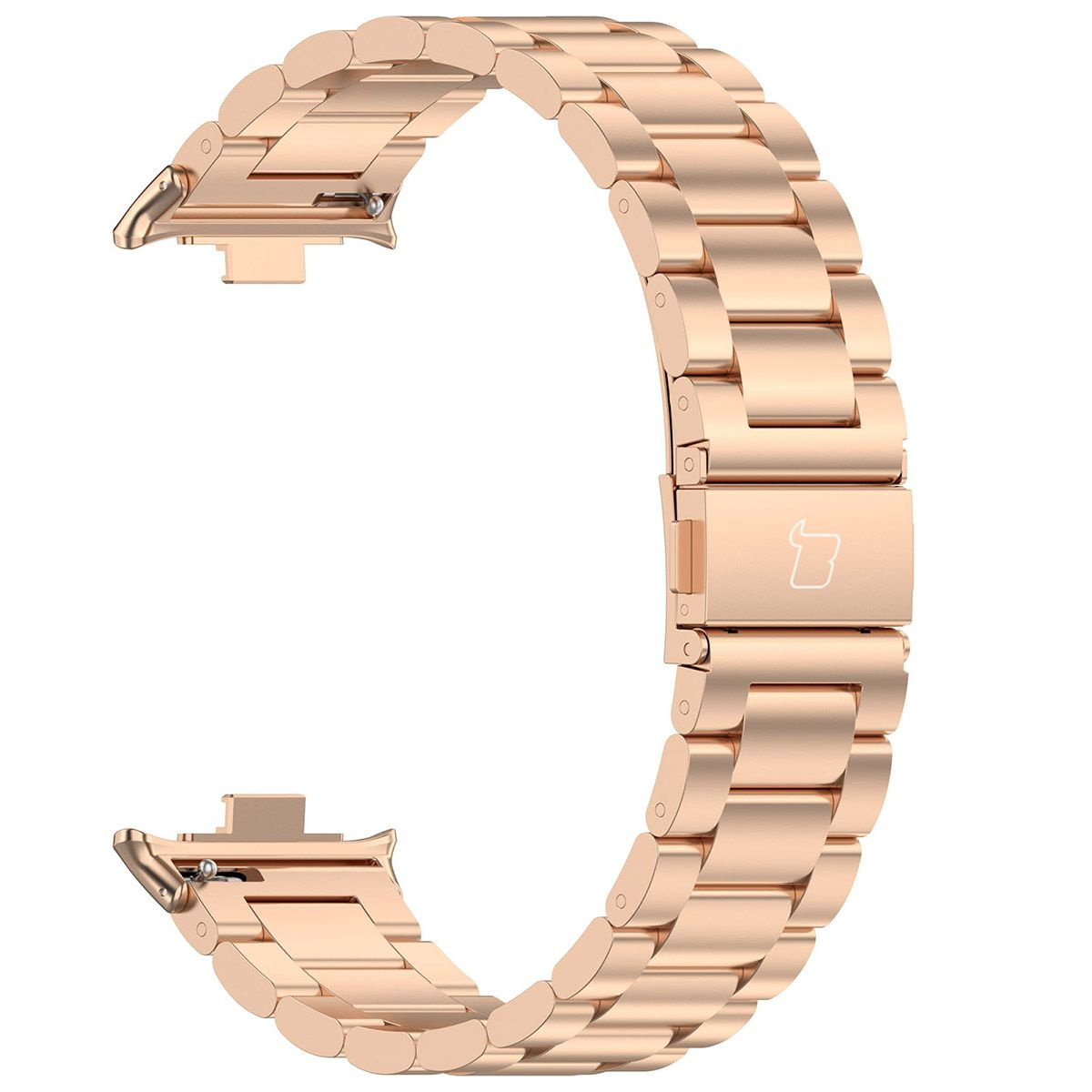 Pasek ze stali nierdzewnej Bizon Strap Watch Aura do Xiaomi Redmi Watch 5/4 / Smart Band 9/8 Pro, różowozłoty
