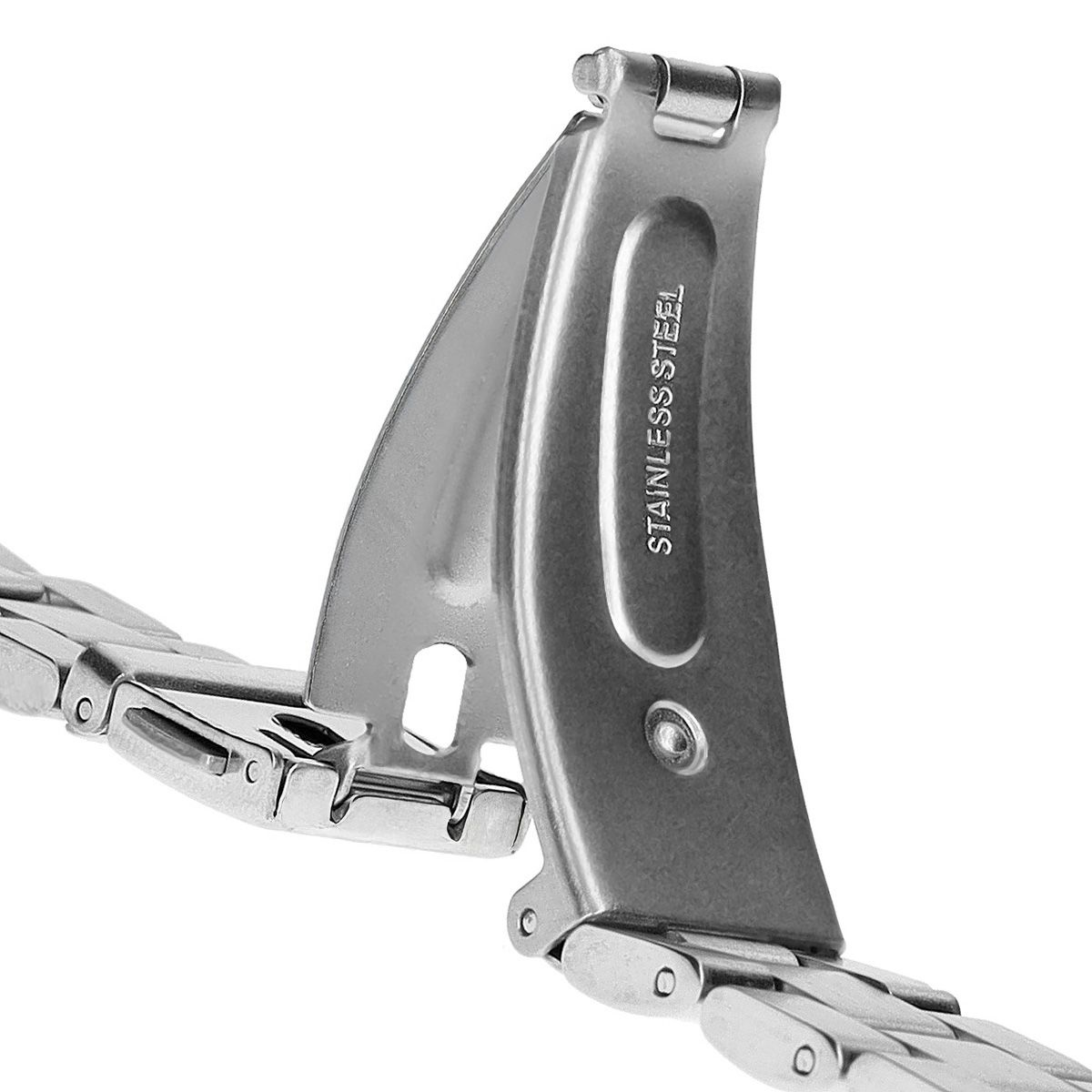 Bransoletka posiada klasyczne zapięcie motylkowe, które jest łagodne dla skóry i dyskretne, dzięki czemu opaska prezentuje się elegancko i harmonijnie. Pasek nie wpływa na funkcjonalność smartwatcha, a jego montaż jest bardzo prosty — wystarczy wpiąć łączenia do koperty zegarka i gotowe!