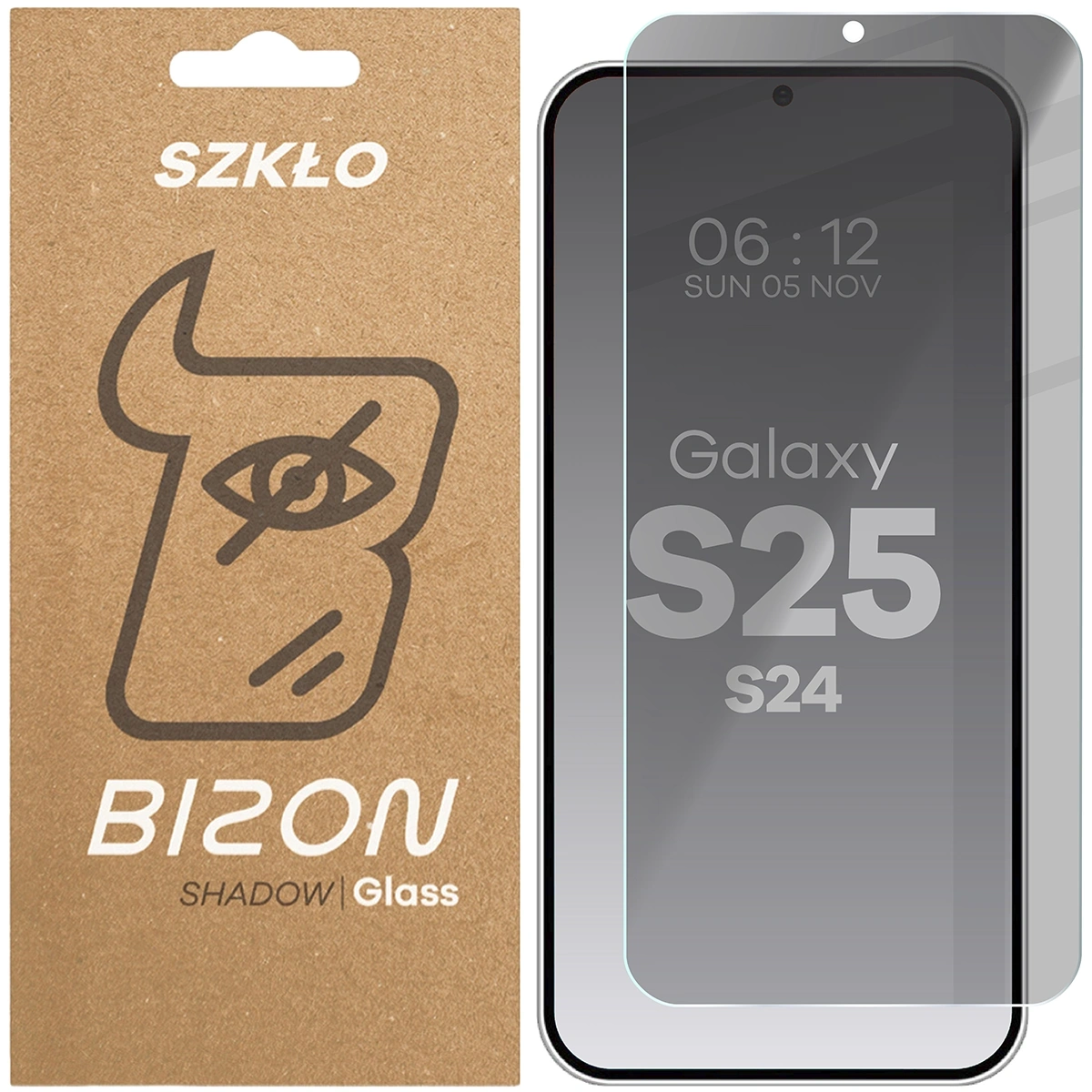 Prywatyzujące szkło hartowane Bizon Glass Clear Shadow do Galaxy S25 / S24, przyciemniane