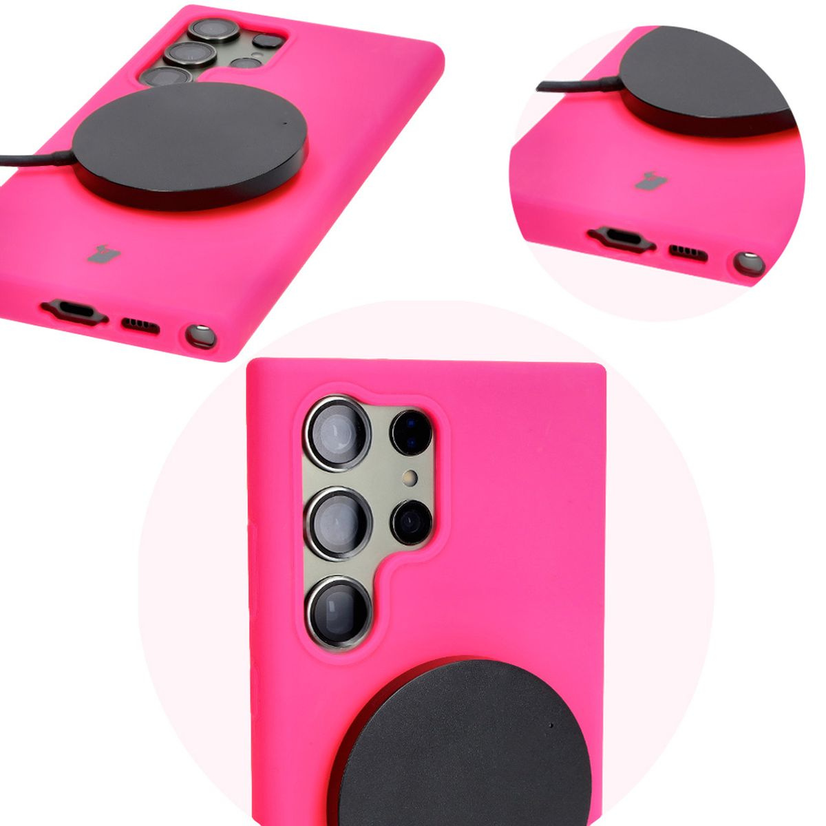 Silikonowe etui Bizon Soft Case do Galaxy S23 Ultra, neonowo-różowe