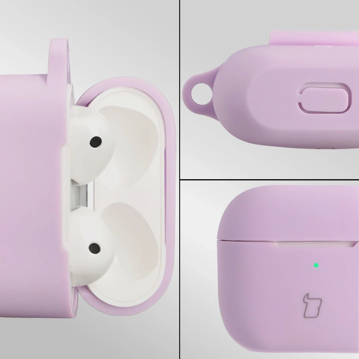 Silikonowe etui z karabińczykiem Bizon Case Headphone Silicone do AirPods 3, lawendowe
