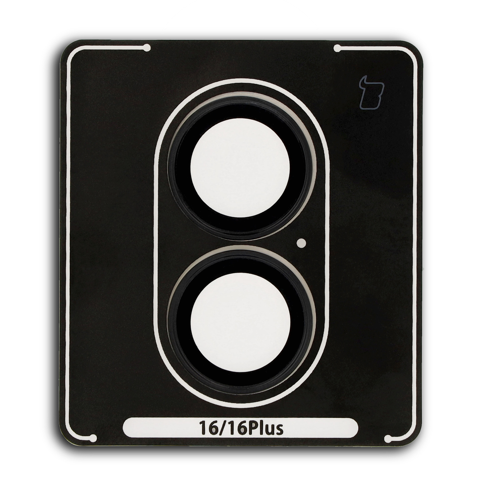 Szkło hartowane na aparat z aplikatorem Bizon Glass Snap Lens do iPhone 16/16 Plus, 1 zestaw, czarna ramka