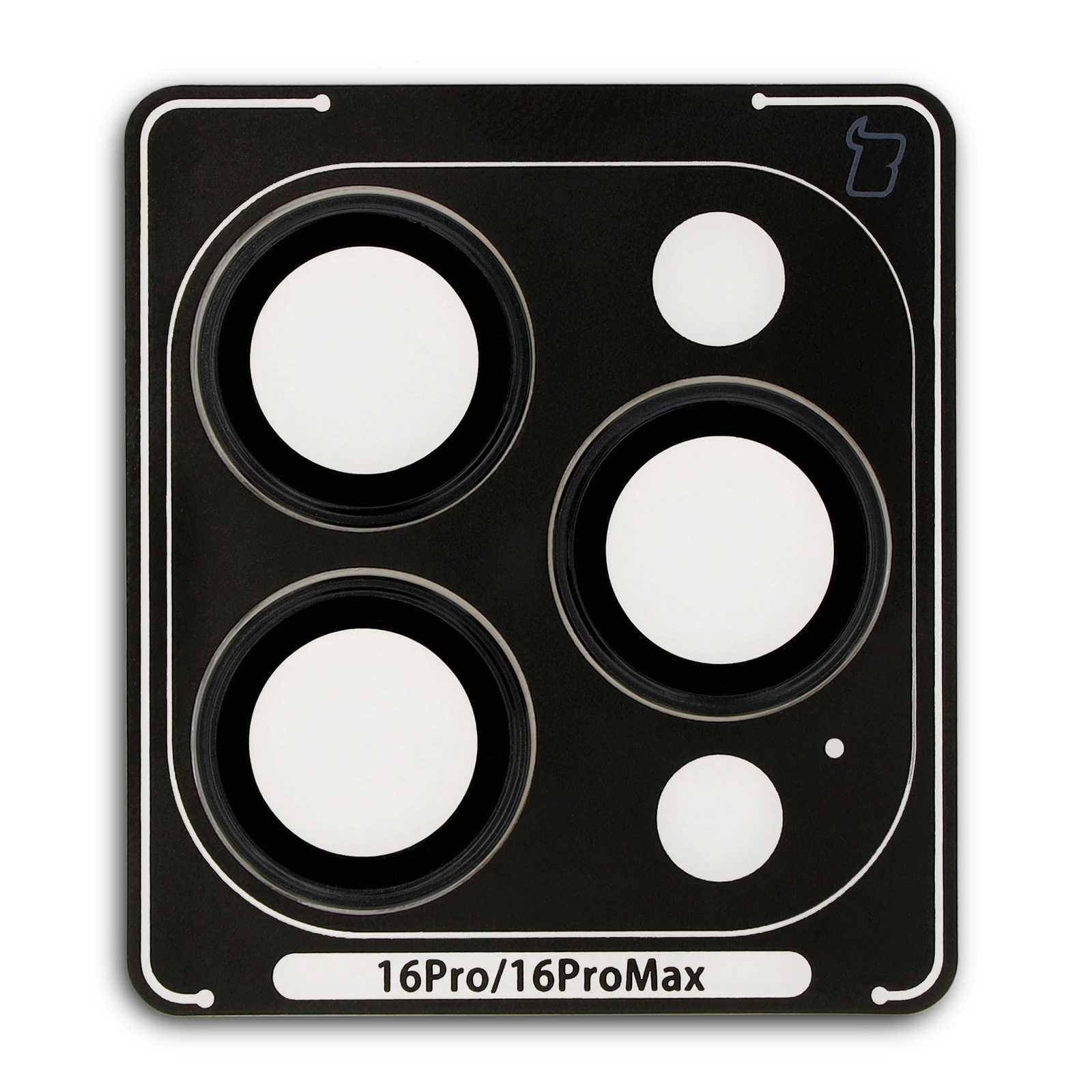 Szkło hartowane na aparat z aplikatorem Bizon Glass Snap Lens do iPhone 16 Pro/16 Pro Max, 1 zestaw, czarna ramka