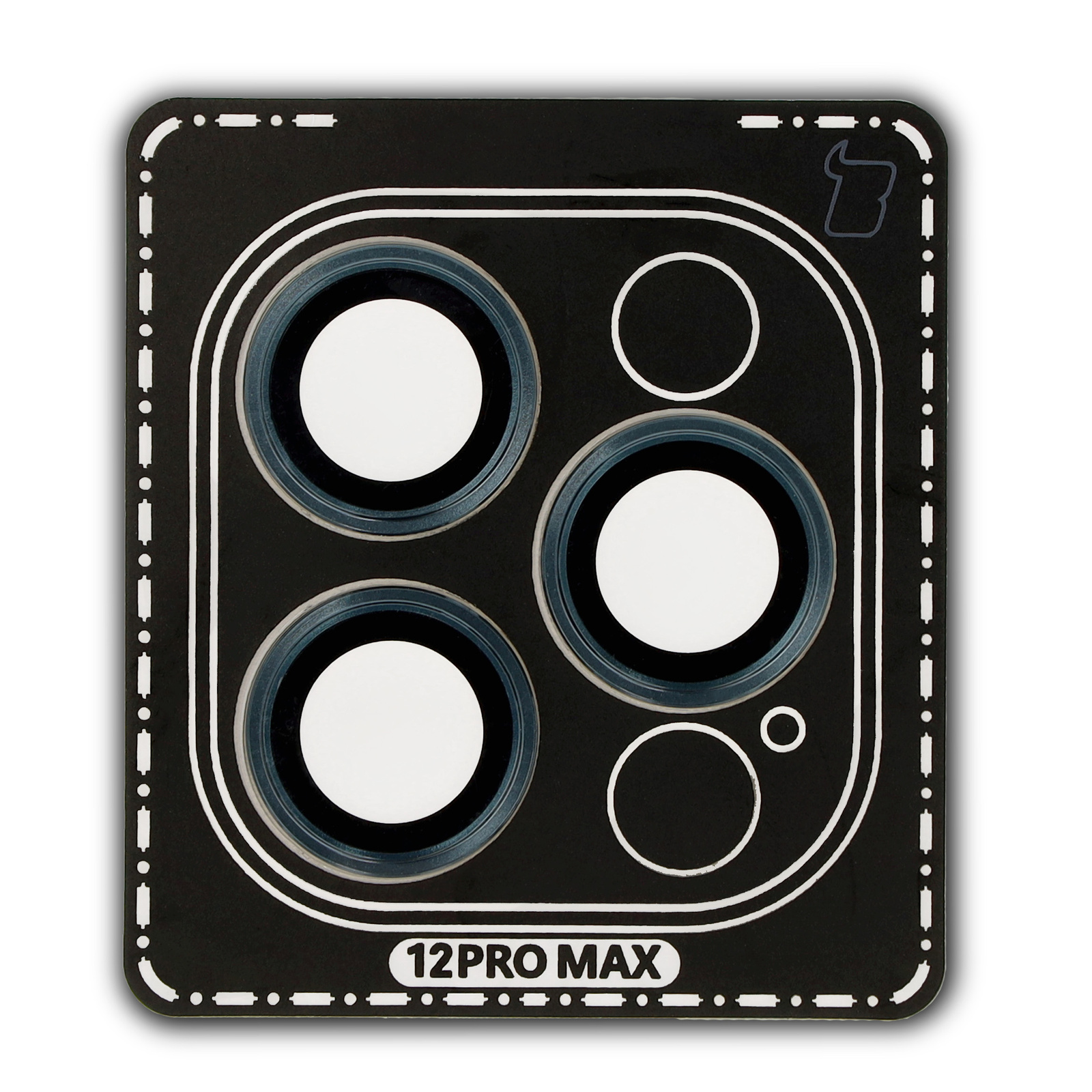 Szkło na aparat z aplikatorem Bizon Glass Snap Lens do iPhone 12 Pro Max, 1 zestaw, morska ramka