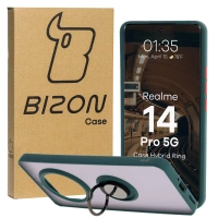 Etui z uchwytem na palec Bizon Case Hybrid Ring do Realme 14 Pro 5G, przydymione z ciemnozieloną ramką